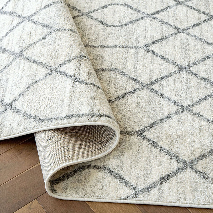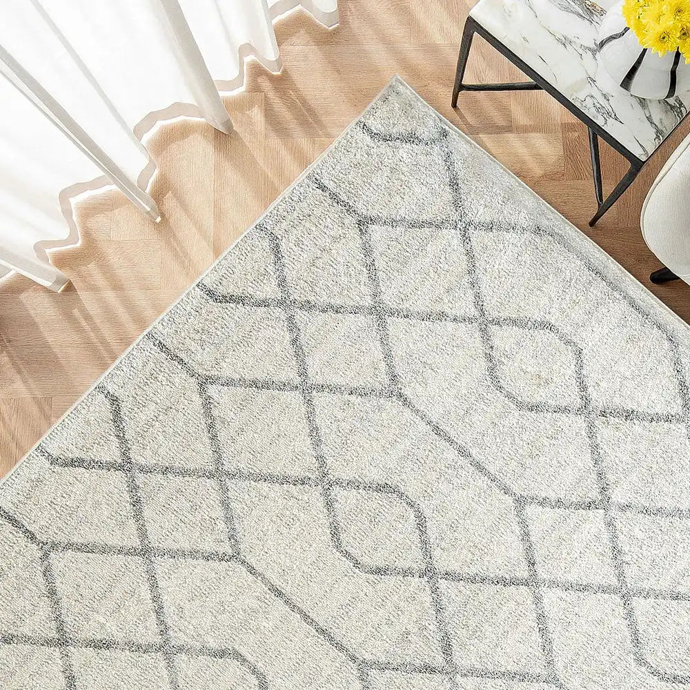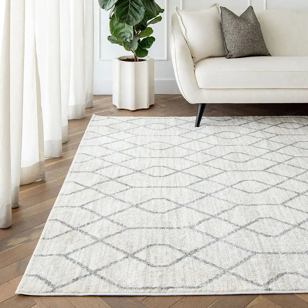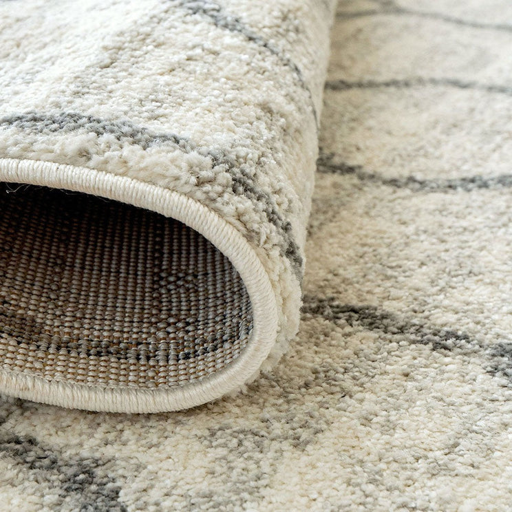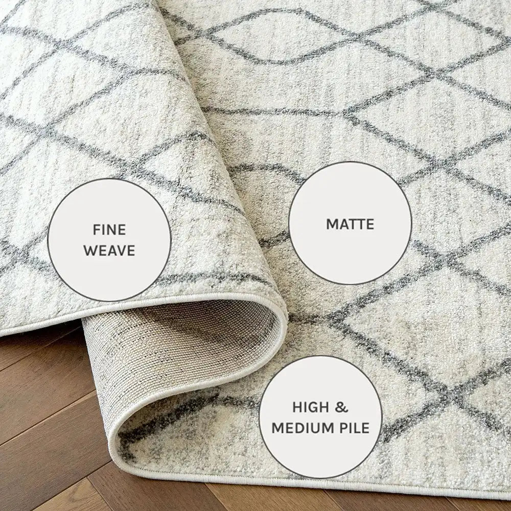 With a geometric design and soft, plush feel, this ivory and grey rug is a stylish way to bring cosy warmth to your interior.