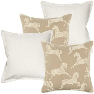 Beige Embroidered Horse and White Cushions