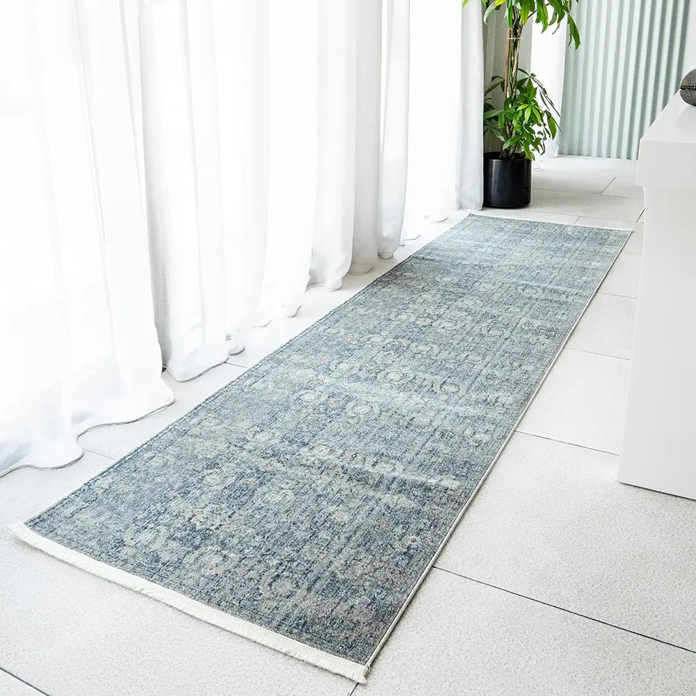 سجادة متعددة الاستخدامات مصنوعة من مواد حديثة وألوان باهتة في الأماكن المميزة.