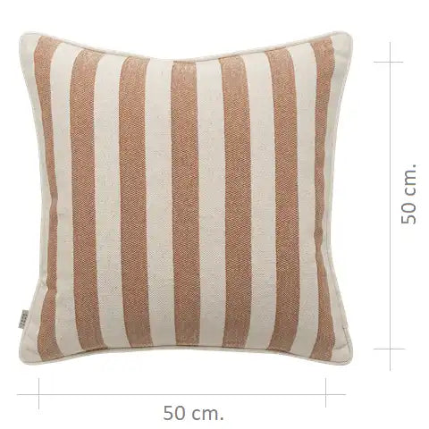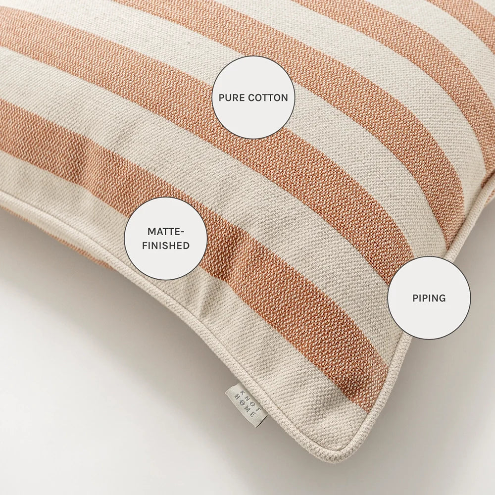 استمتع بالأجواء الدافئة مع هذه الوسادة المخططة بالأبيض ولون الصدأ. تأتي هذه الوسادة المخططة بدرجات الألوان الترابية الدافئة لتجمل شكل أي غرفة معيشة.