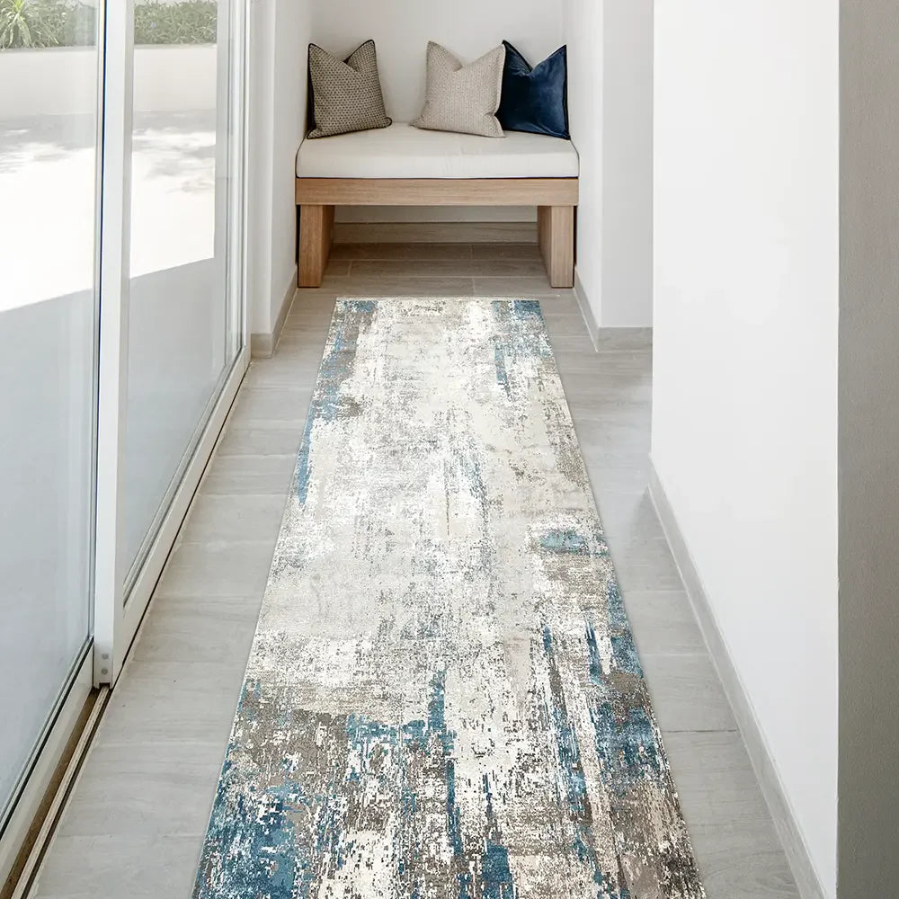 سجادة بلون خفيف وتأتي بحياكة شبكية لمظهر فني مميز.