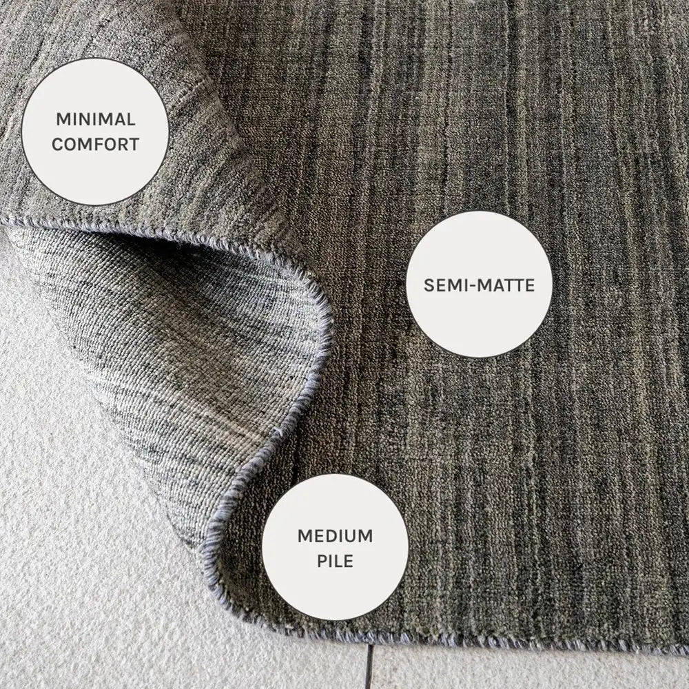 سجادة من مزيج من الحرير الصناعي والصوف ومصنوعة يدويًا لإضفاء لمسة فاخرة.