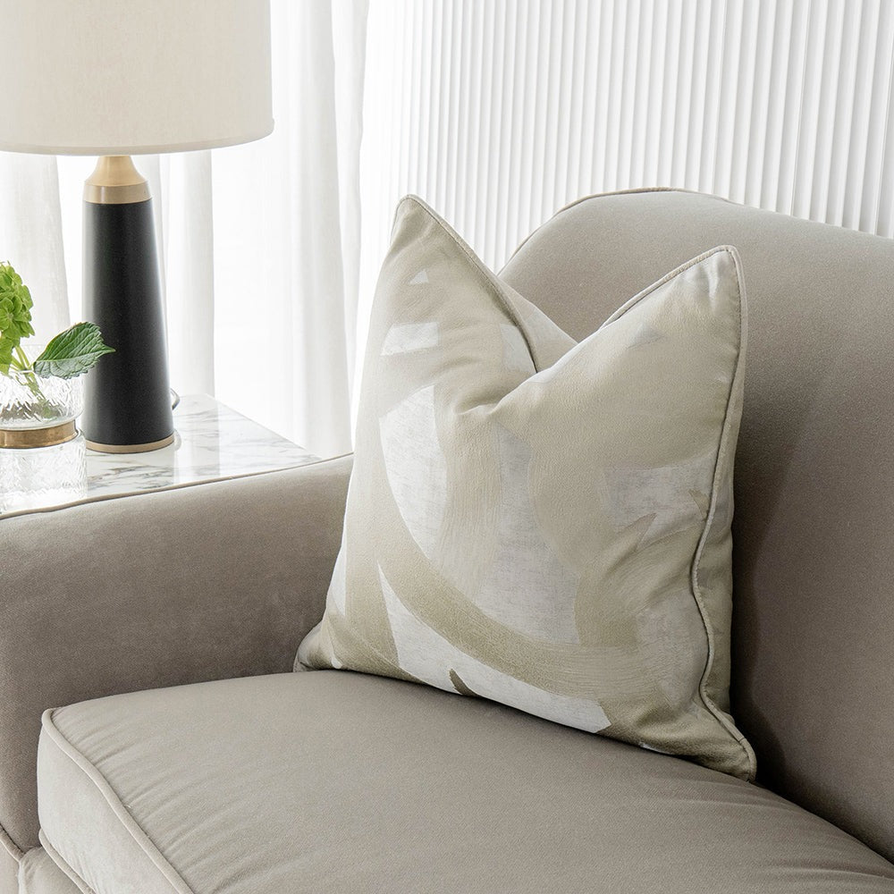 بظلال من الفضي، تحتوي هذه الوسادة الزخرفية على نقش أنيق متماوج مصمم ليشبه دفعات من الطلاء. هذه الوسادة الملمس لها بريق ناعم سيمنح أريكتك تحديثًا فوريًا