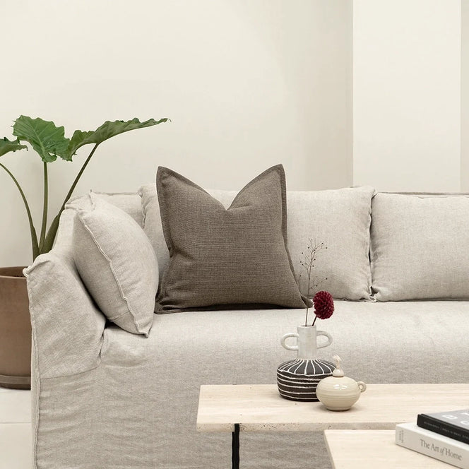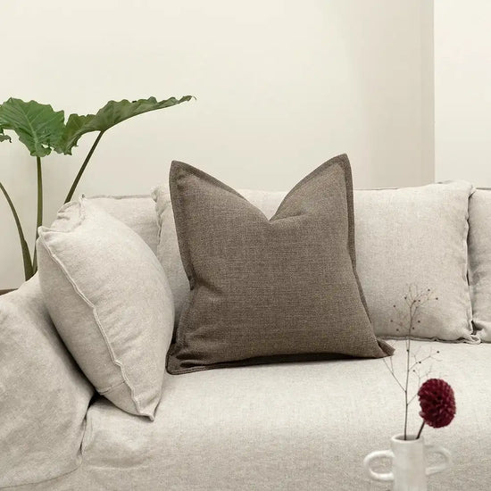 ضف المزيد من الأناقة إلى غرفة معيشتك مع هذه الوسادة باللون البني. تأتي بدرجات اللون الرمادي البني الأنيق مع حواف عريضة حول الأطراف لإطلالة فاخرة.