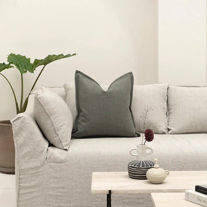 هذه الوسادة المصنوعة من الحرير الصناعي تمزج بين الأناقة والراحة. تأتي مع حافة عريضة لإحساس فاخر، باللون الرمادي الزيتوني الأنيق لترتقي بديكورك.