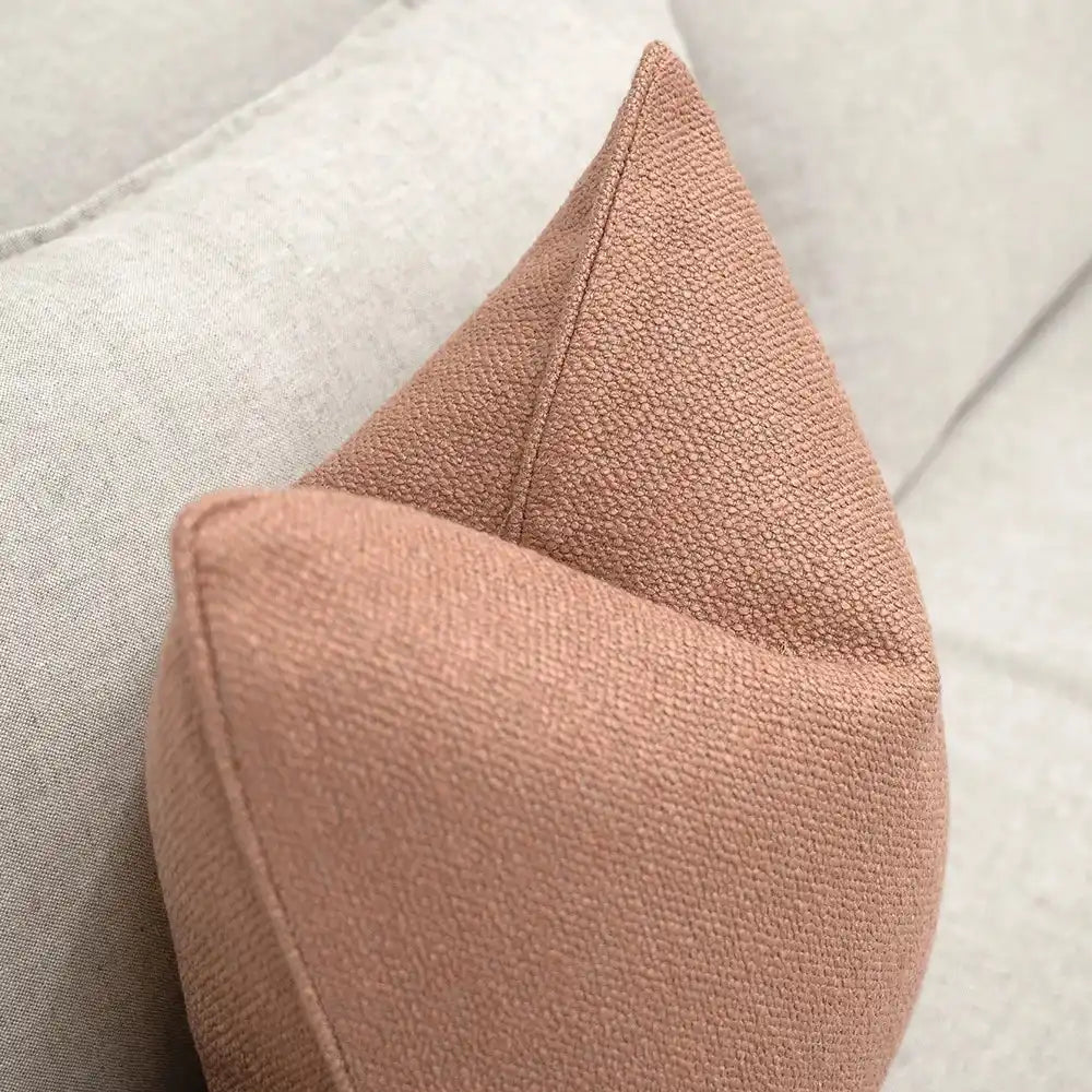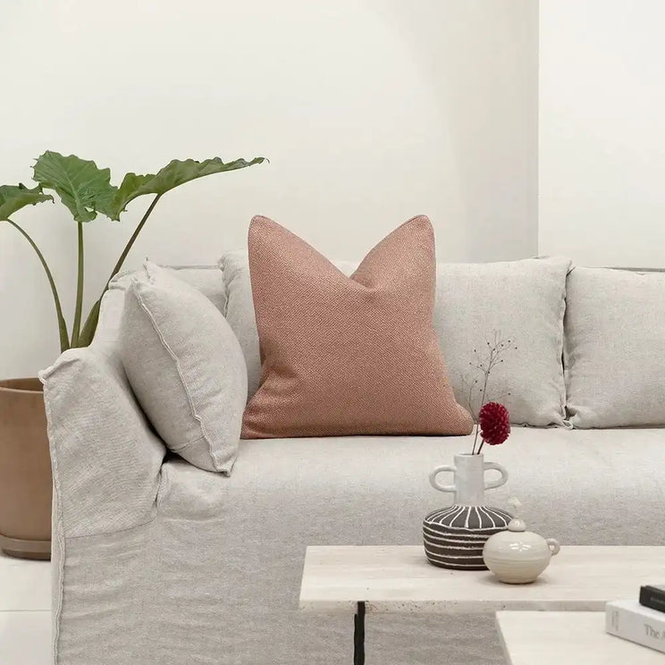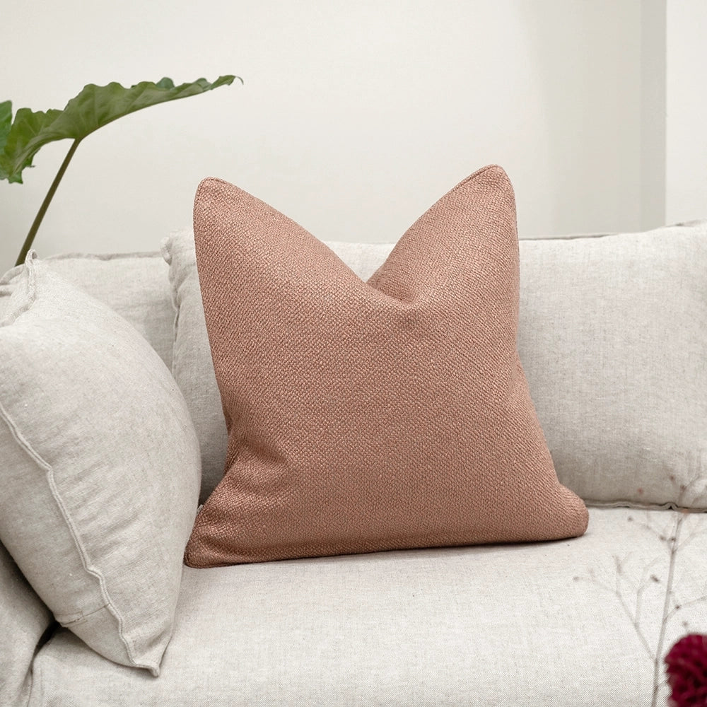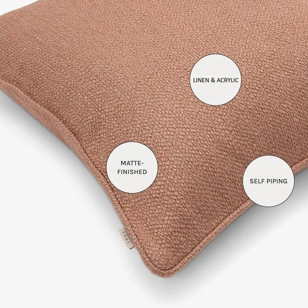 وسادة من نسيج كتان فاخر، تضيف جمالاً طبيعياً ولمسة أنيقة لديكورك، وتأتي بلون وردي سادة مع حواف أنيقة تكمل إطلالتها.
