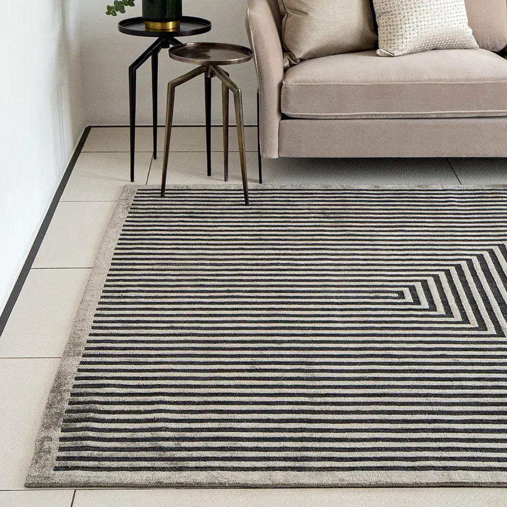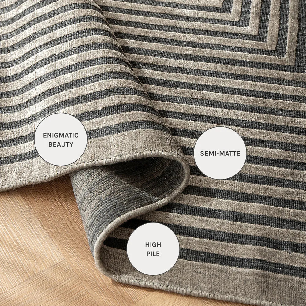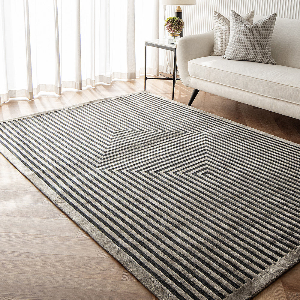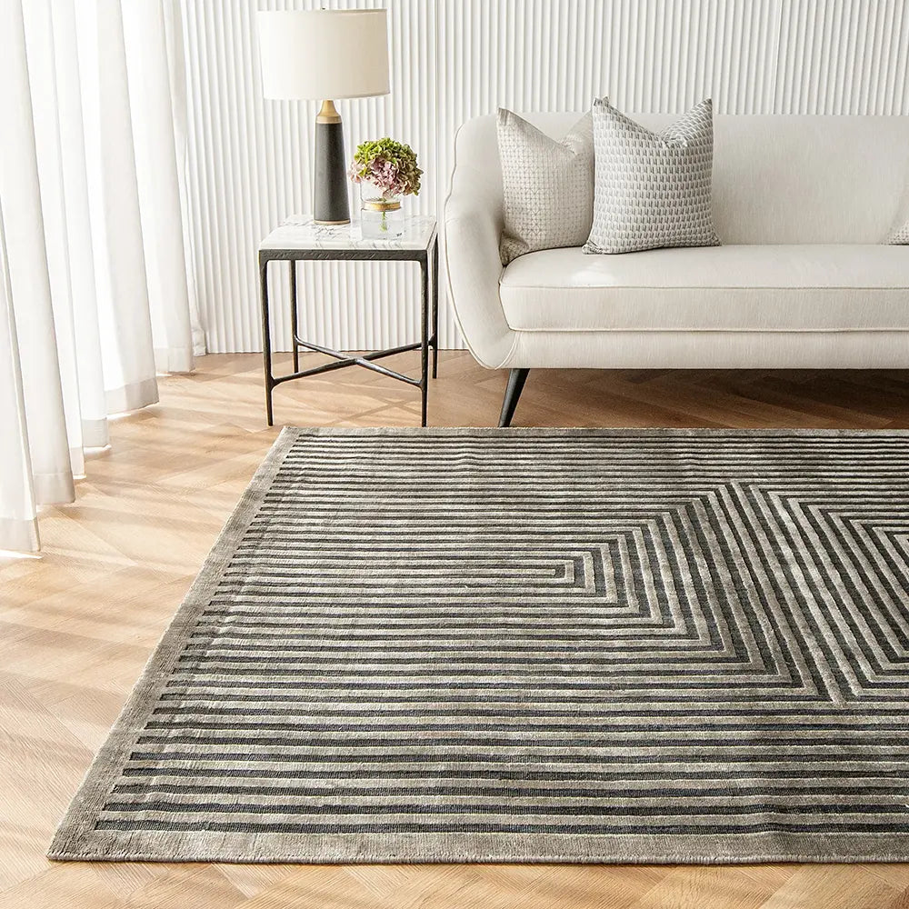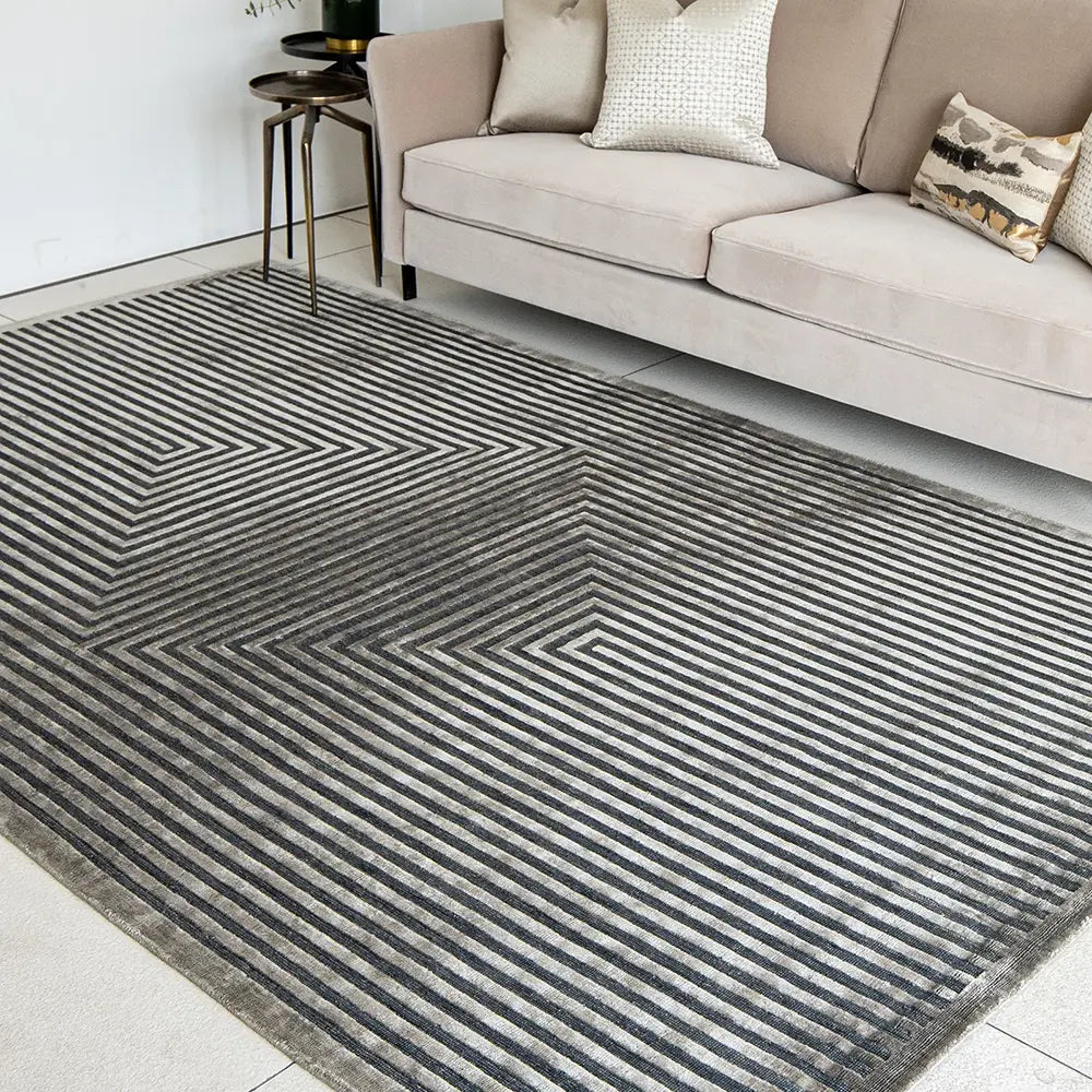تتميز هذه السجادة الرمادية بإحساس فني لتضفي مظهر جريء في تصميم الديكور الداخلي العصري.
