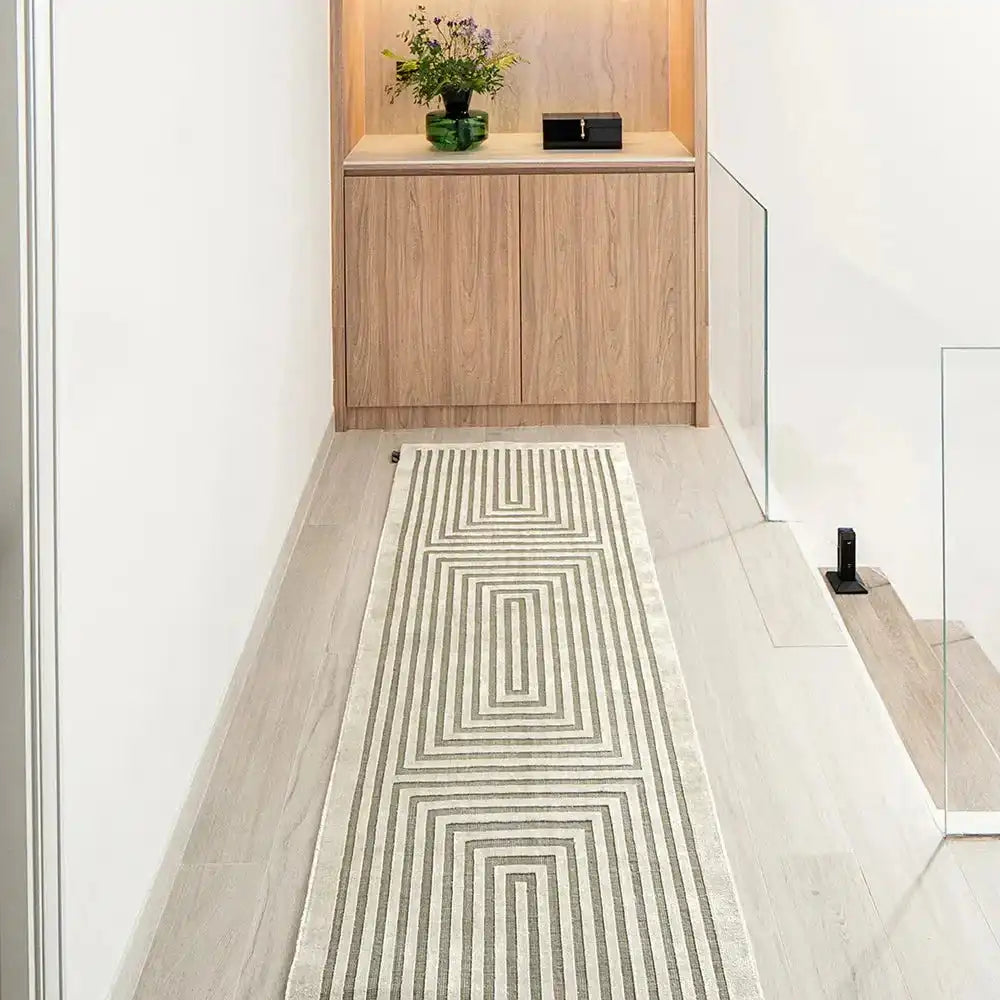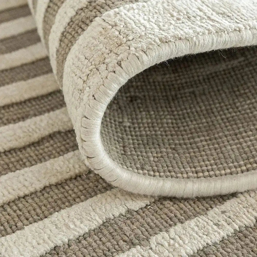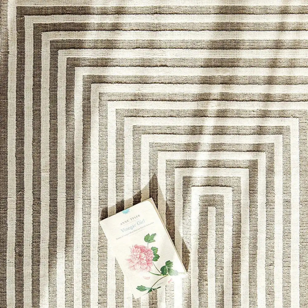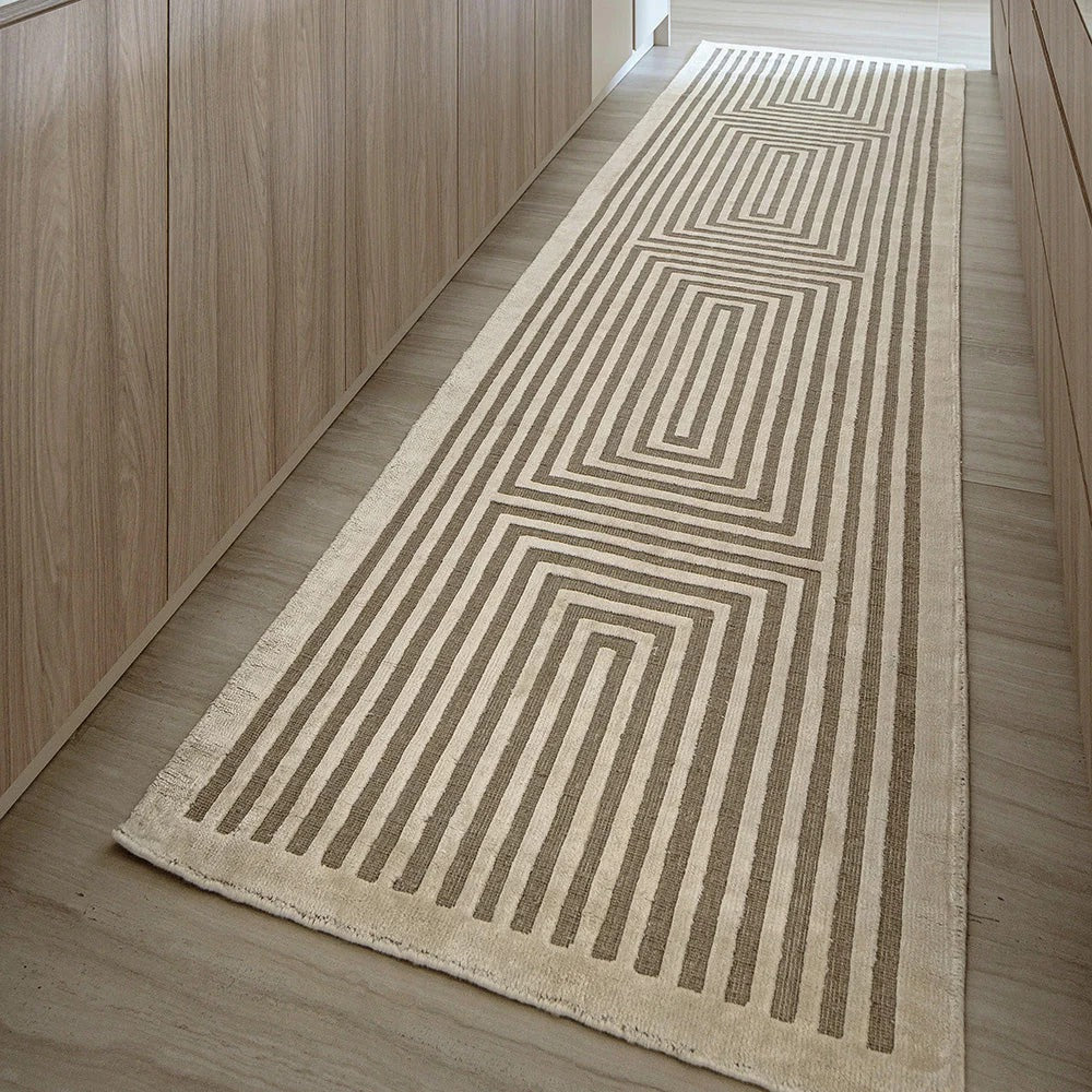 سجادة بنمط هندسي باللون العاجي والبيج وتضيف لمسة من الأناقة إلى ديكورك المنزلي العصري.