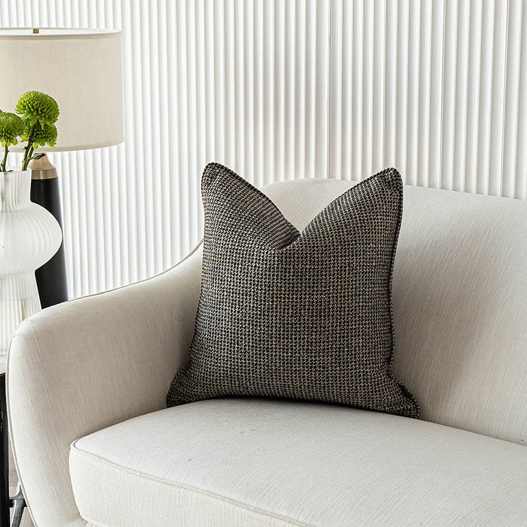 وسادة باللون الأسود والفضي مزينة بنمط مميز وكلاسيكي لإضافة لمسة من الأناقة إلى ديكورك المنزلي.