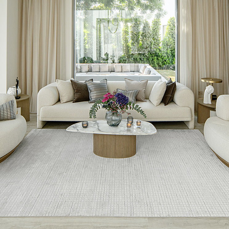 باللون الرمادي والعاجي ، ستكمل هذه السجادة أي لوحة ألوان