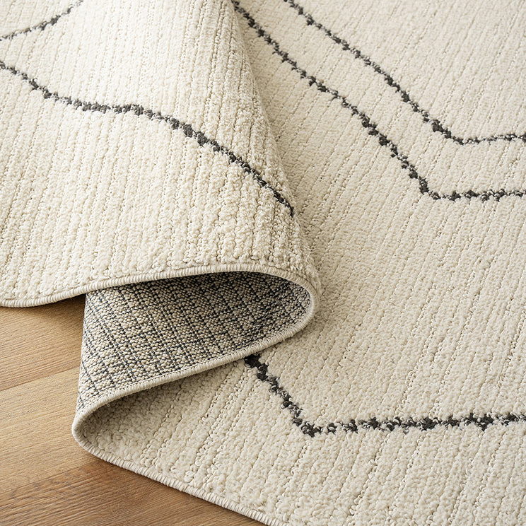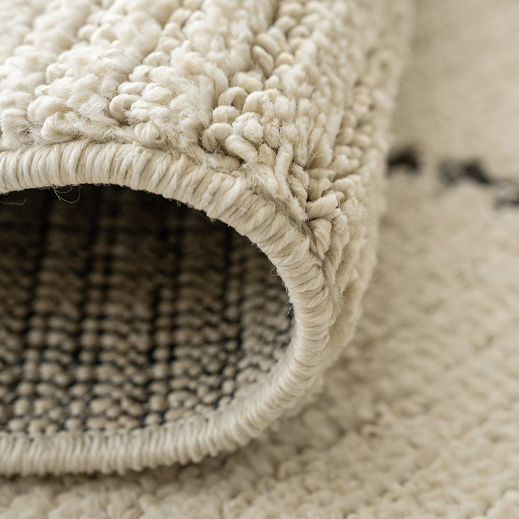 تخلق الخطوط غير المنتظمة نمطًا ماسيًا على هذه السجادة باللونين العاجي والبيج - وهو خيار أنيق لأي غرفة في منزلك.