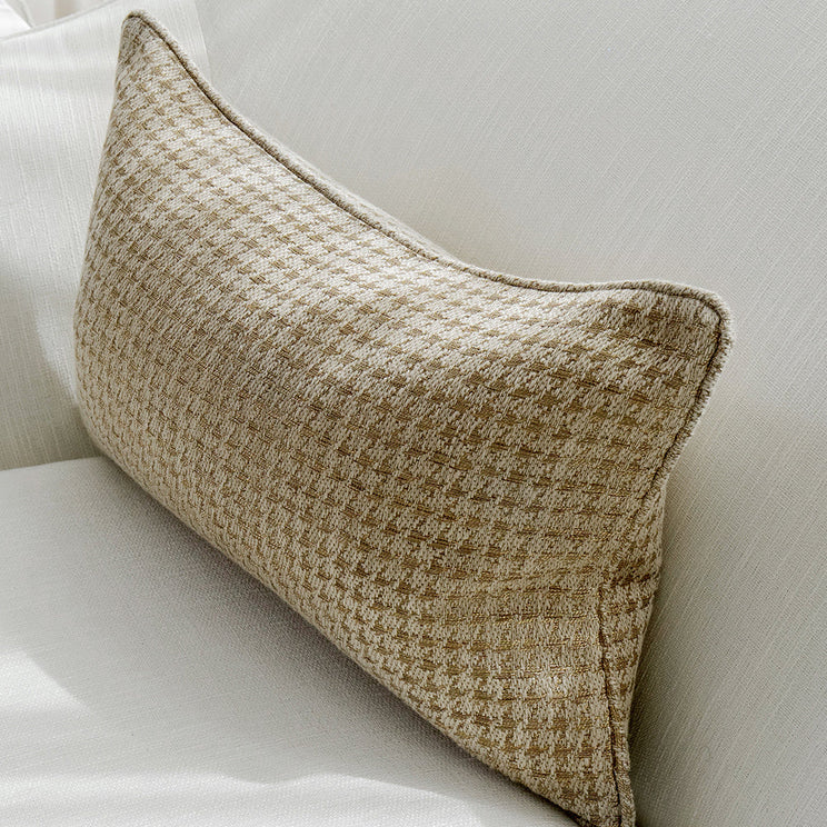 وسادة تليق بكل الأذواق. تأتي بتفاصيل من اللون البني وتتميز بنمط مربعات بلون موحد للحصول على مظهر كلاسيكي مع لمعان عصري.