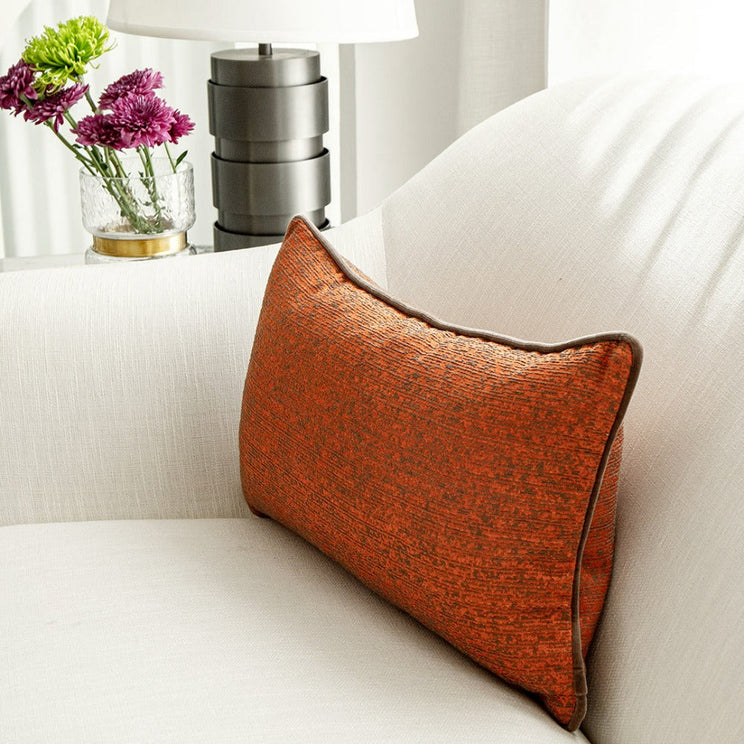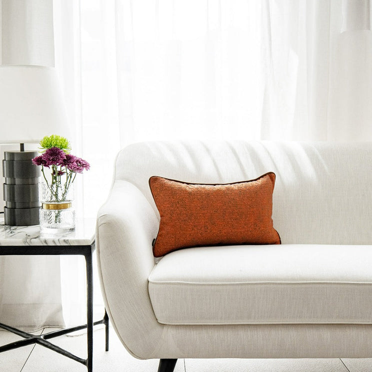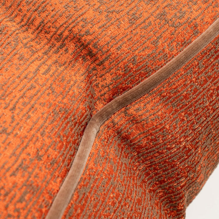أضف الألوان الدافئة إلى غرفة معيشتك مع وسادة ليندا تانجيلو التي تأتي باللون البرتقالي والنسيج البني الداكن مع حواف أنبوبية متباينة.