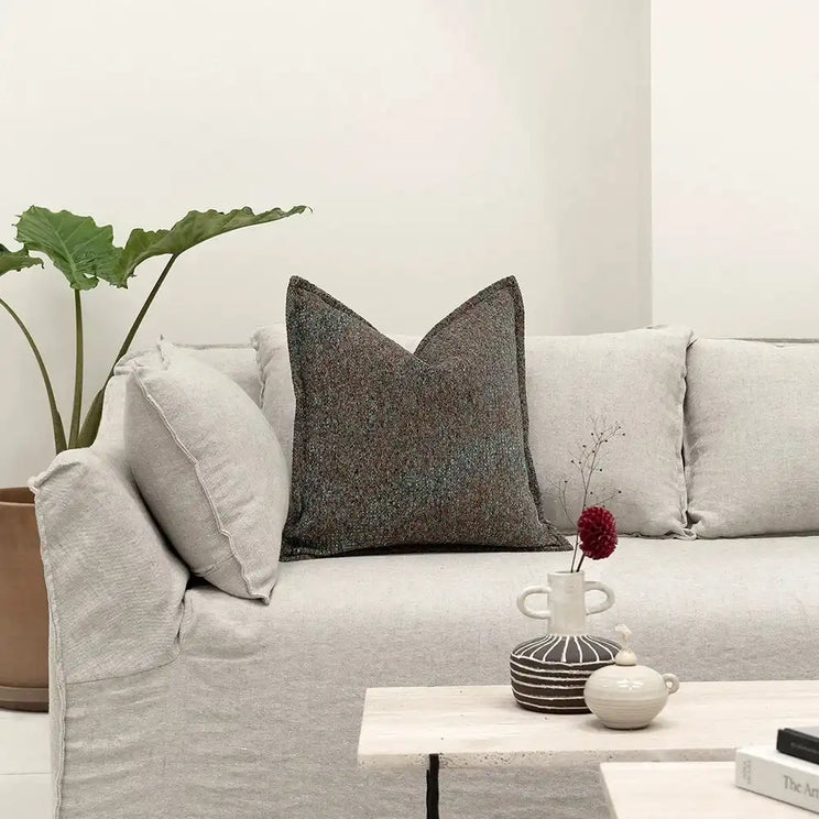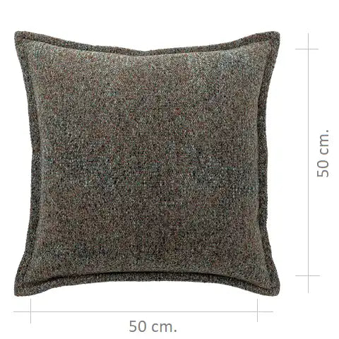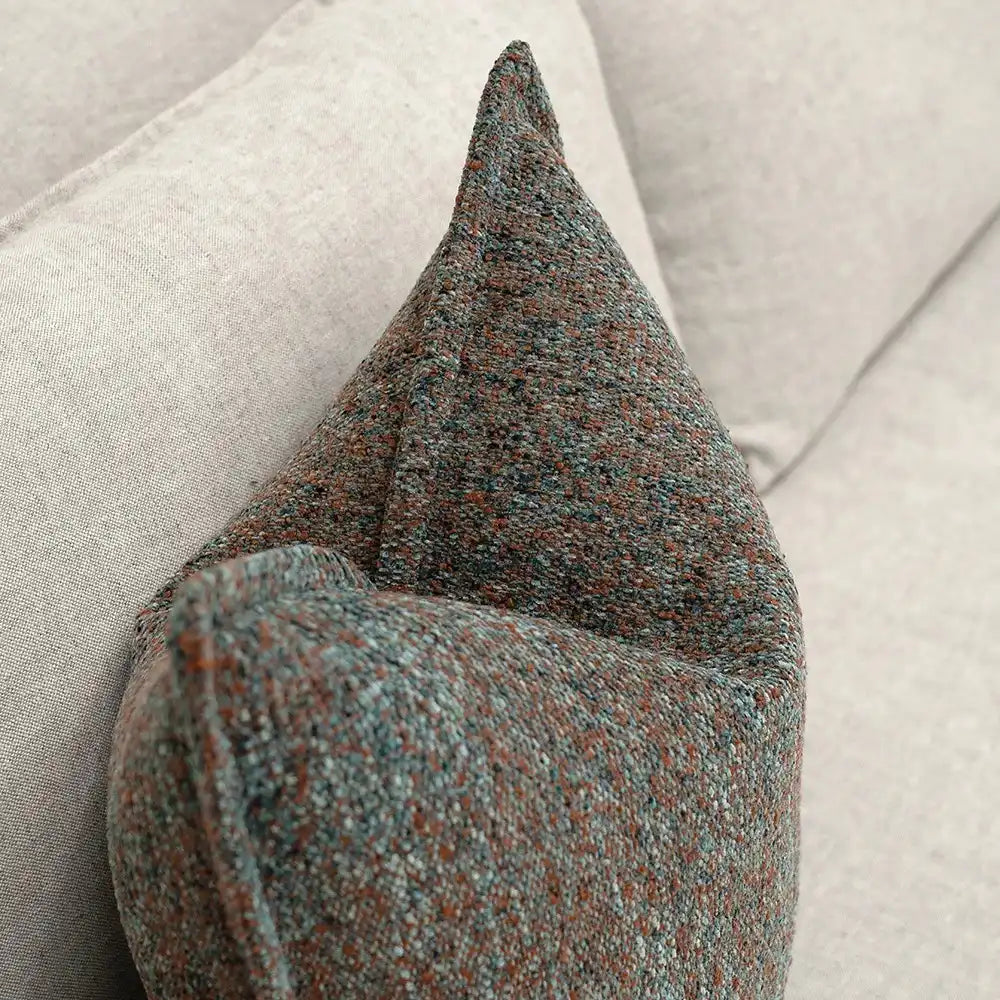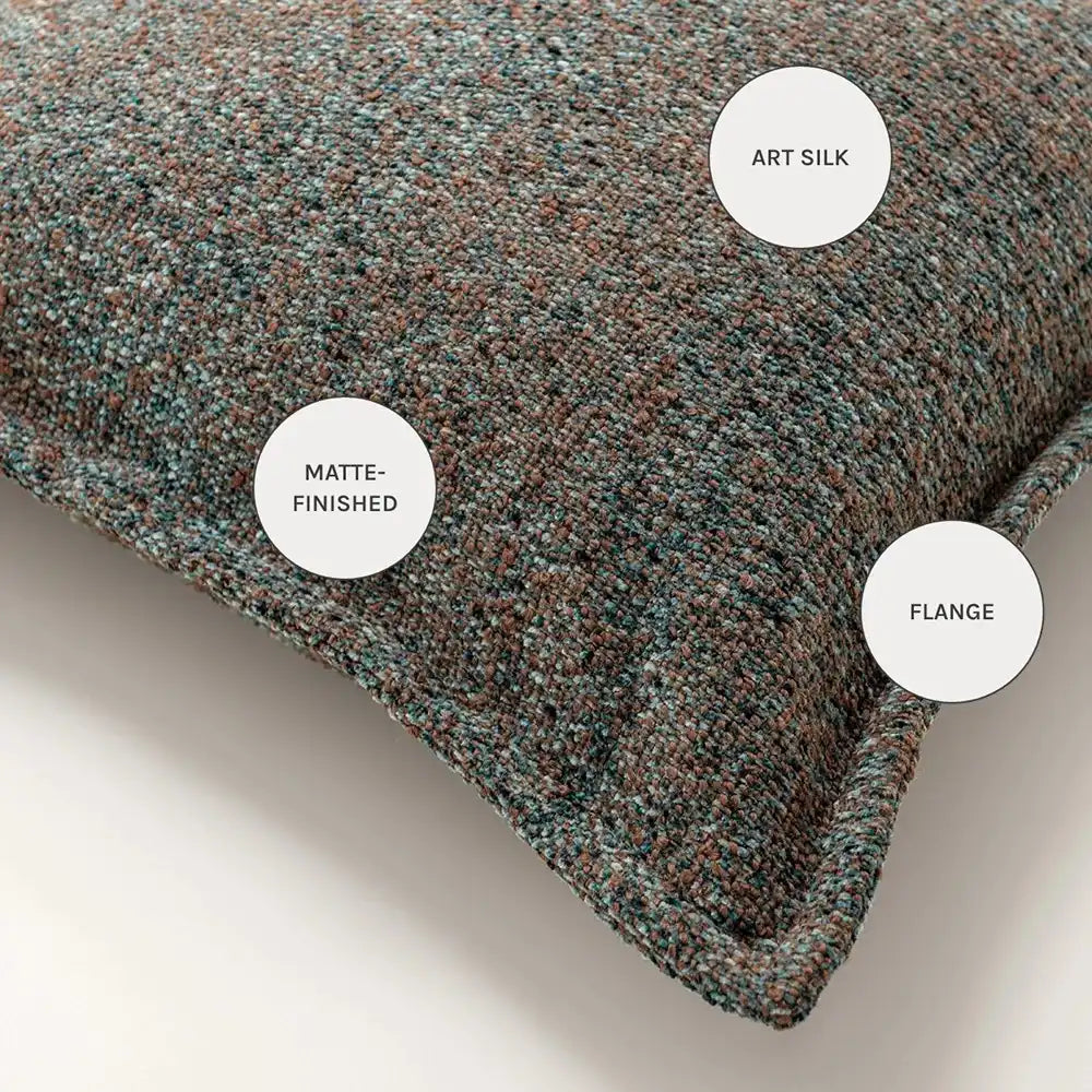 وسادة متعددة الألوان بدرجات الأزرق والصدئ والرمادي تأتي بلمسة نهائية ناعمة وحواف خفيفة، وتضيف ملمسًا غنيًا وإحساسًا فاخرًا إلى أي مساحة.