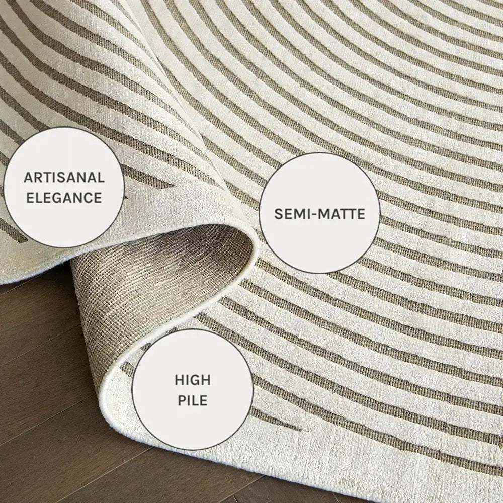 هذه السجادة الفاخرة مصنوعة من الحرير الصناعي والصوف الممشط، وقد تم صنعها يدويًا لتمنحك شعورًا فاخرًا.