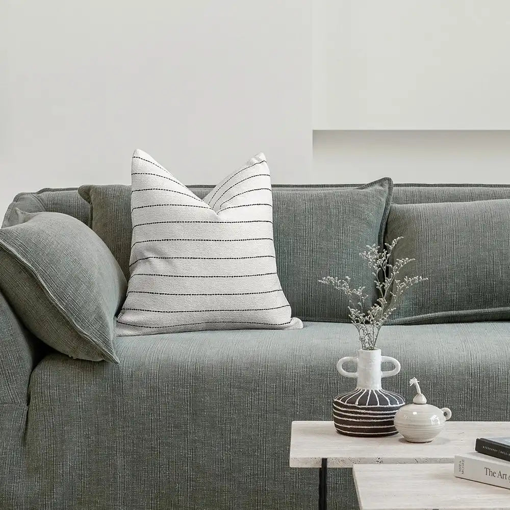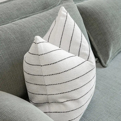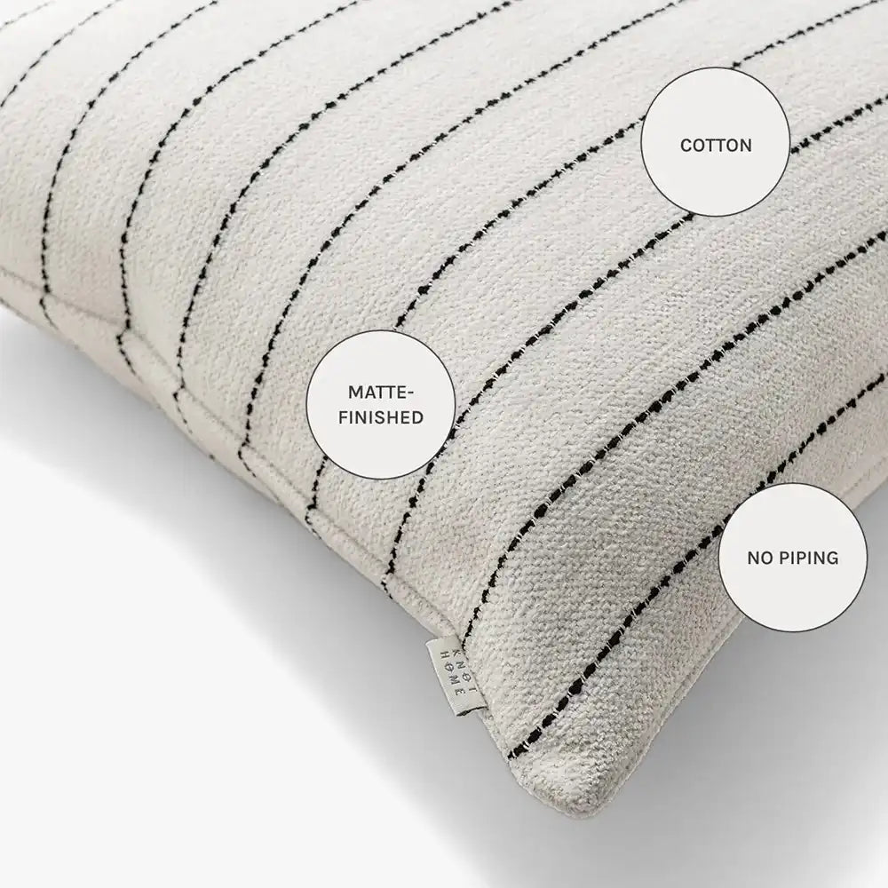وسادة بتصميم عصري وبسيط تأتي مع خطوط وهي خيارًا مثاليًا للمنازل العصرية. مصنوعة من القطن النقي وتتميز بخطوط ضيقة باللون الأبيض والأسود لتكمل الديكور الحديث.