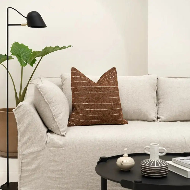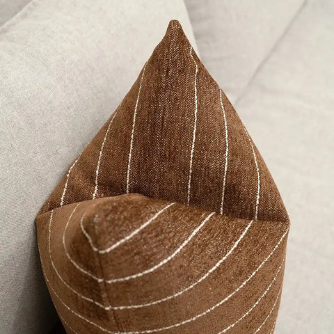 وسادة بخطوط مميزة مع ألوان دافئة وتصميم عصري تضيف الشعور بالدفء إلي ديكورك مع الحفاظ على التصميم الحديث.