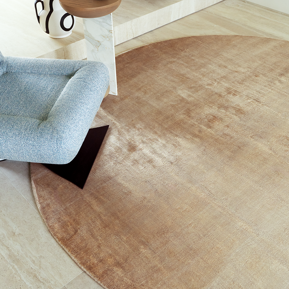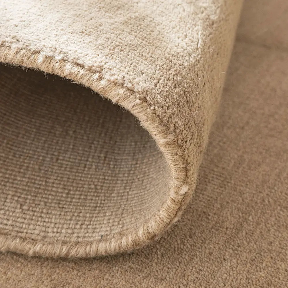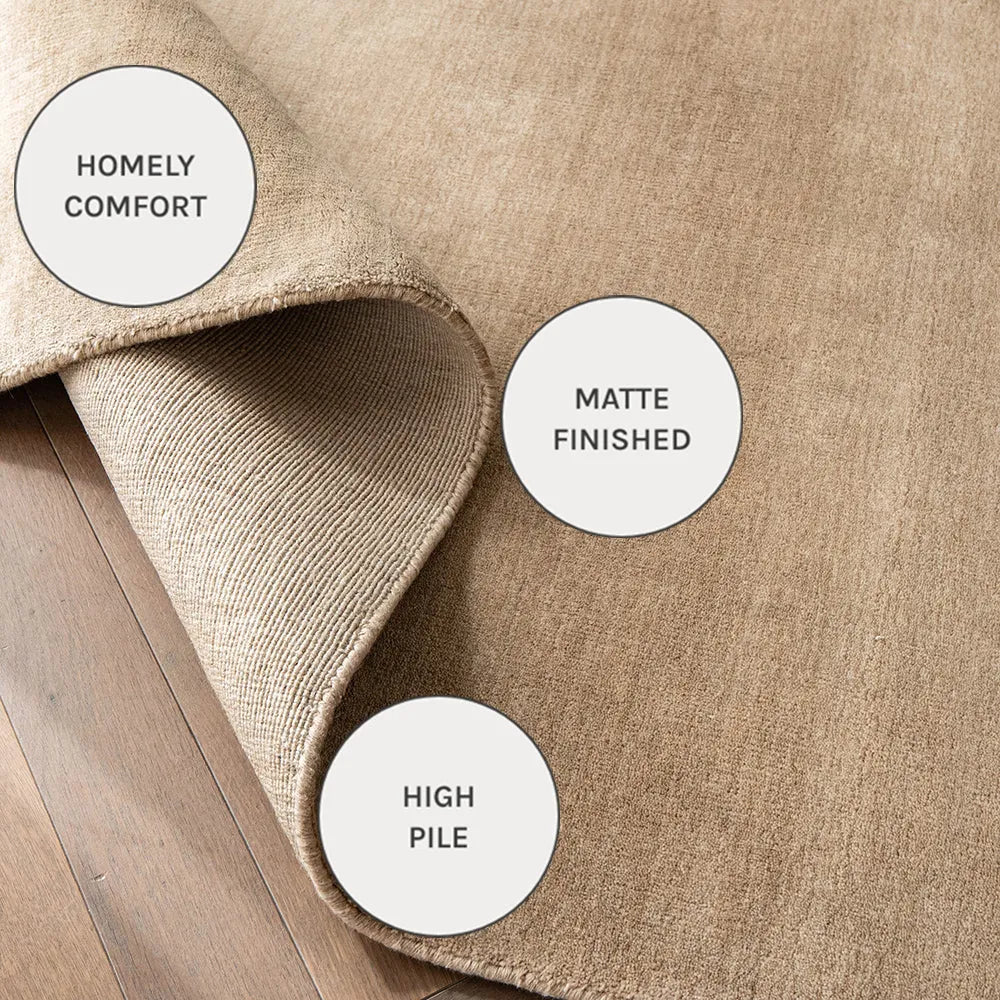 سجادة تأتي بدرجات من البيج ومصنوعة من الصوف والحرير الصناعي تضيف لمسة من الأناقة إلى غرفة معيشتك.