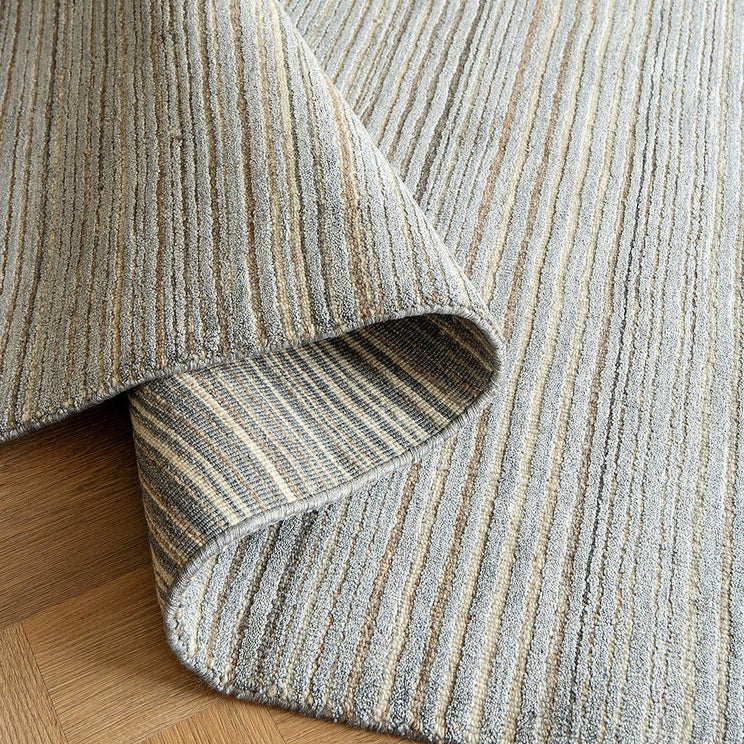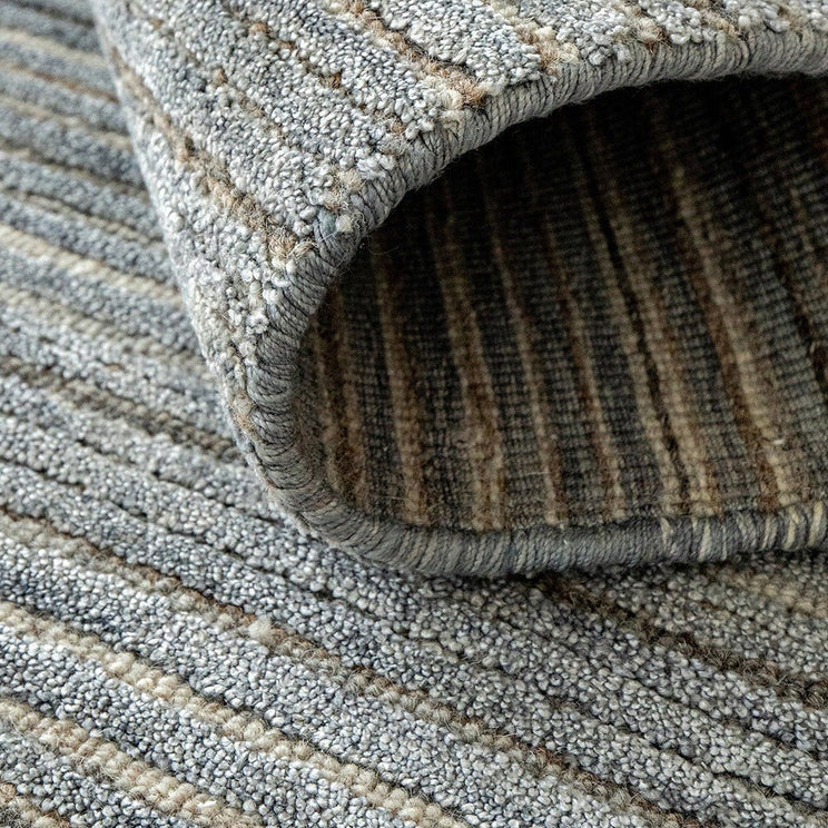 مصنوعة من مزيج من الحرير الصناعي والصوف الممشط، هذه السجادة المخططة تم صنعها يدويًا للحصول على احساس بالفخامة.