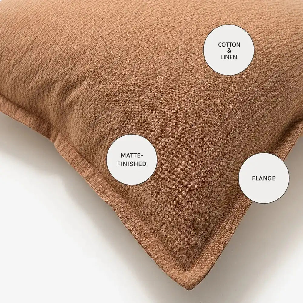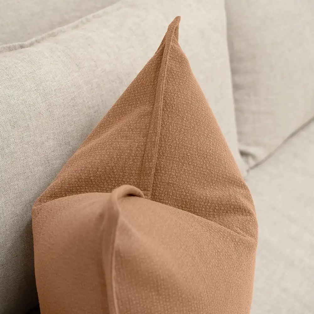 عندما يلتقي اللون بالراحة: أضف الدفء والألوان الترابية إلى ديكورك مع هذه الوسادة باللون البني الفاتح. مصنوعة من مزيج من الألياف الطبيعية وتجمع بين الكتان والقطن لتمنح الشعور بالدفء والراحة في المكان.