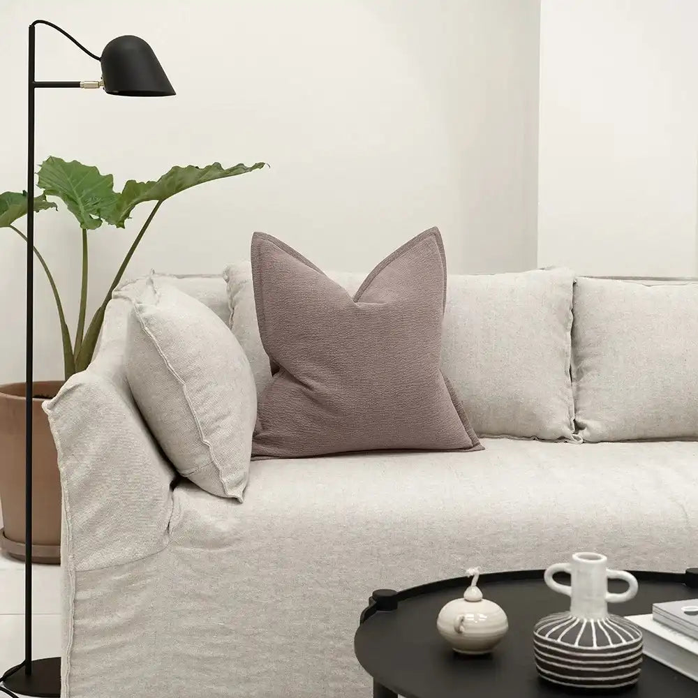 وسادة مصنوعة من الكتان الطبيعي الذي يسمح بالتهوية باللون البنفسجي تجمع بين الأسلوب الأنيق والراحة بامتياز. سواء استخدمتها بمفردها أو قمت بتنسيقها مع وسائد مزخرفة، ستُعجب بدرجتها الناعمة.