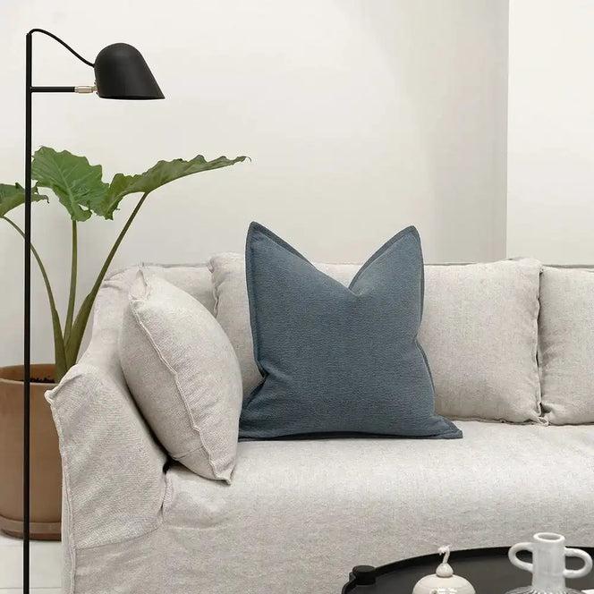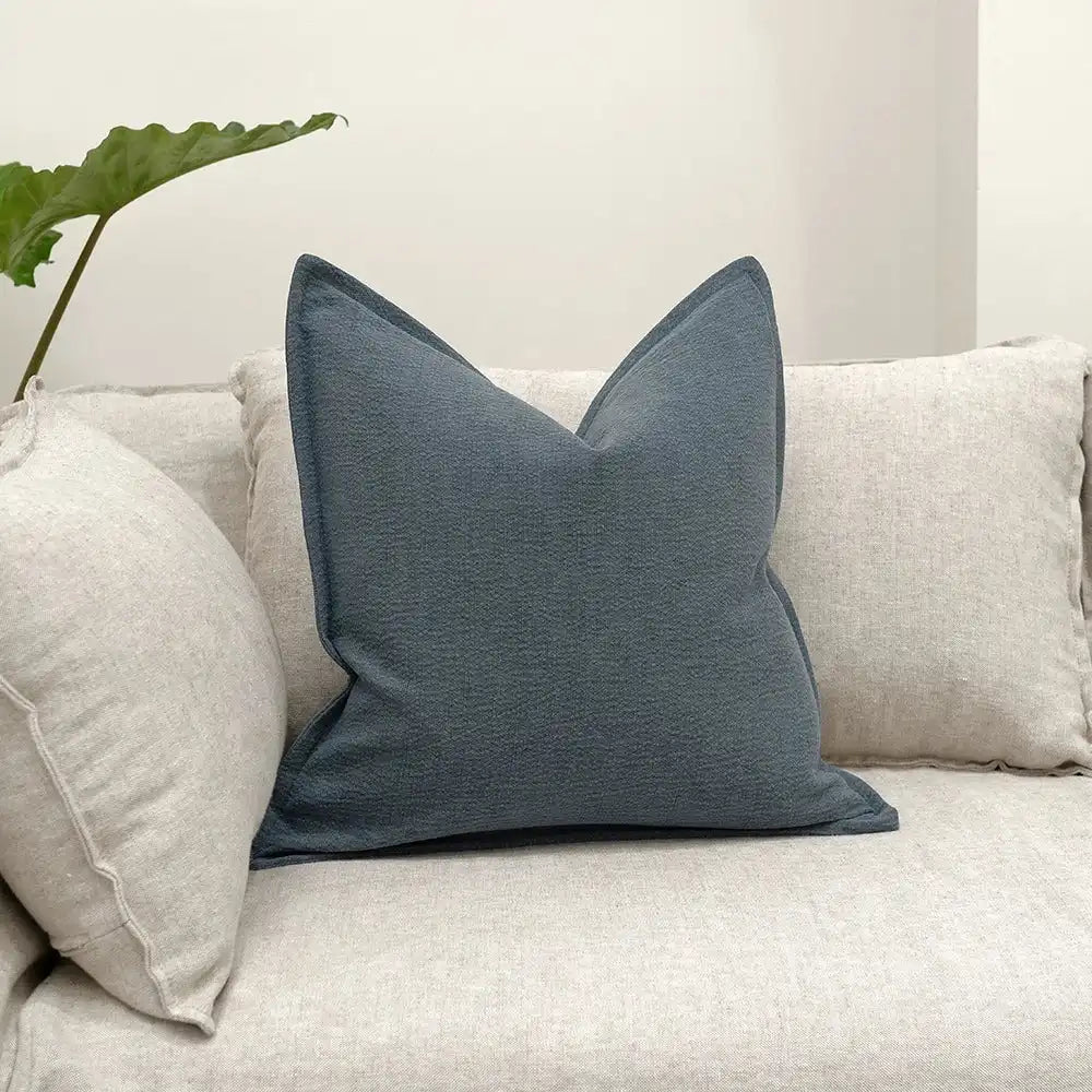وسادة مصنوعة بالكامل من القطن والكتان بلون كحلي ناعم وملمس مغسول بلطف. تجمع بين أليافها الطبيعية ونعومتها الخفيفة لتمنحك طابعًا راقيًا يوازن بين العمق والخفة بكل أناقة.