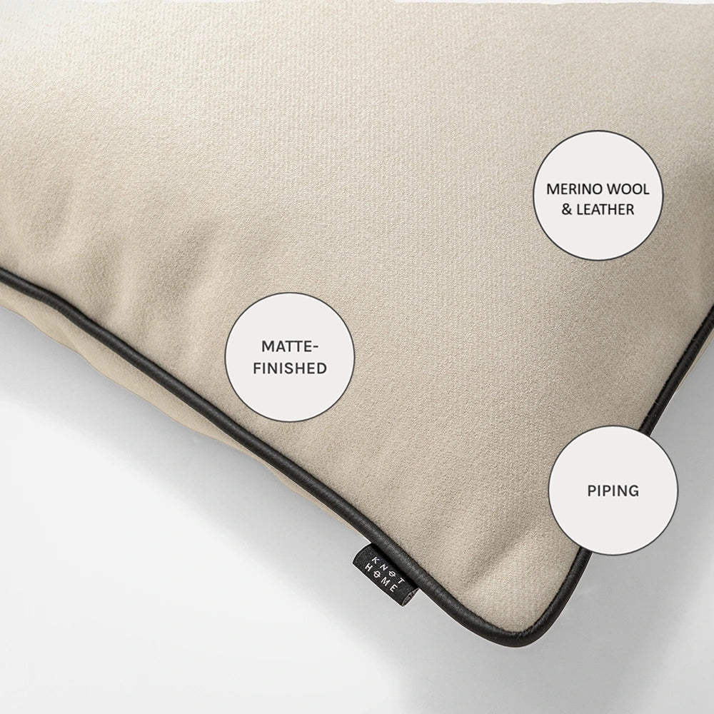 وسادة مصنوعة من مزيج صوف ميرينو فائق النعومة بملمس كثيف وسطح نظيف وبسيط. تتميز بالفخامة والهدوء، لتضفي دفئًا ناعمًا وأنيقًا يثري أي مساحة
