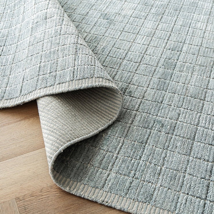 سجادة من مزيج من الصوف والحرير الصناعي، وقد تم صنعها يدويًا لإضفاء إحساس فاخر.