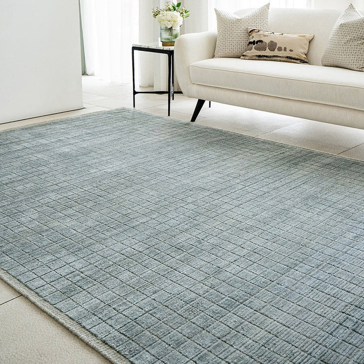 سجادة تيلور سكاي تأتي باللون الأزرق والرمادي مع تفاصيل عصرية مميزة.