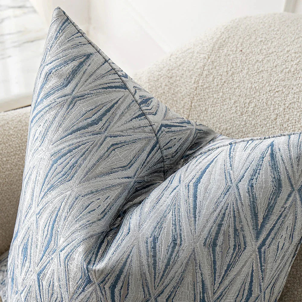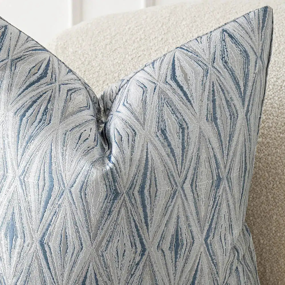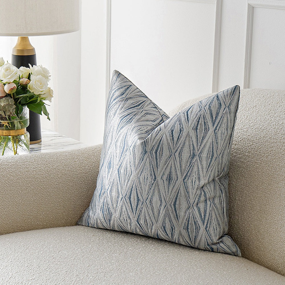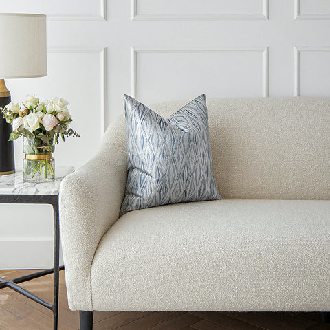 وسادة تايتوس ماتيس من اللون الأزرق تأتي بتفاصيل لامعة ومزينة بنمط مميز لإضافة الأناقة.