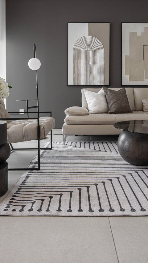 سجادة باللون الأسود والأبيض المميز لتليق بجميع الألوان.