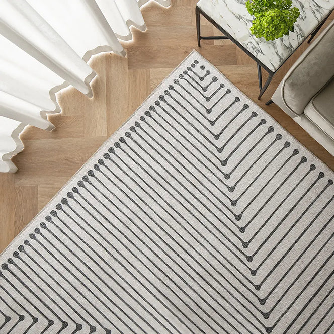 سجادة فينس بيانكا تأتي باللون الأبيض والأسود مع تفاصيل عصرية مميزة.