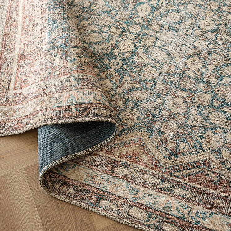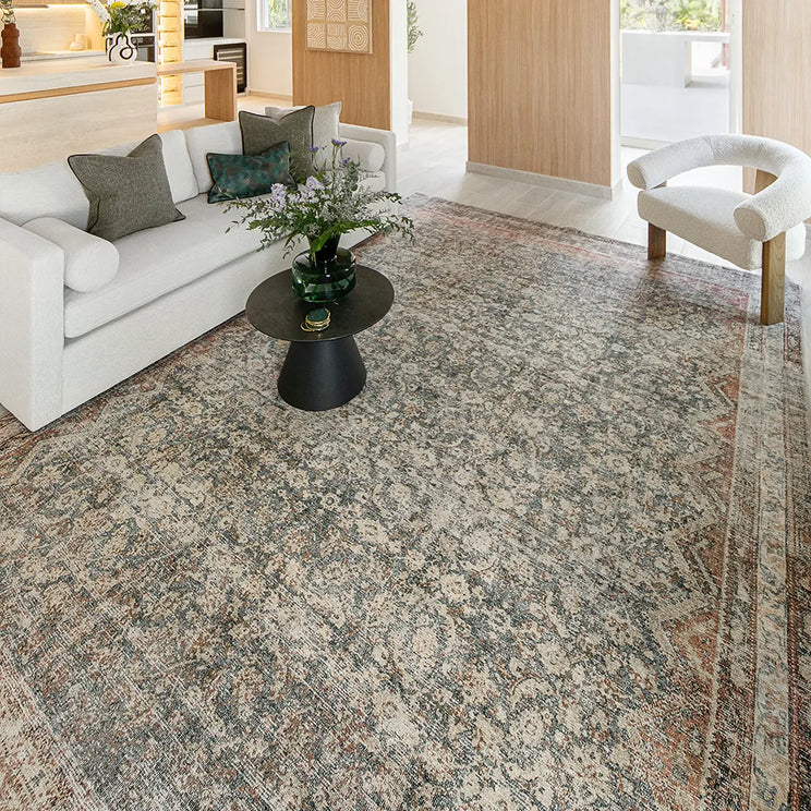 تقليدية مع لمسة عصرية: هذه السجادة بلون البيج، والصدأ، والأزرق ترتقي بالنمط التقليدي الباسلي بألوان ومواد معاصرة. يتميز السجاد المتلاشي بالملاءمة المثالية للمنازل الحديثة.