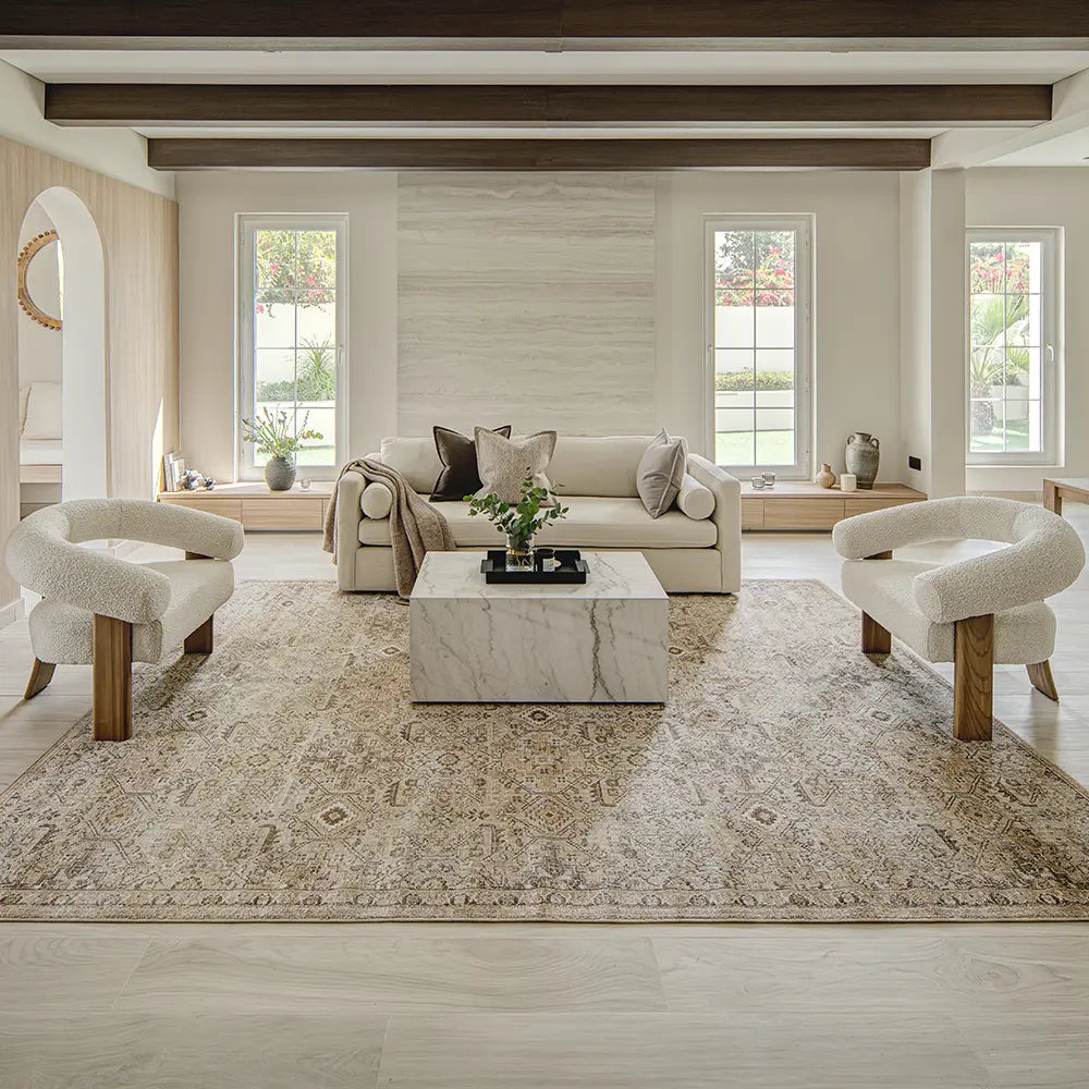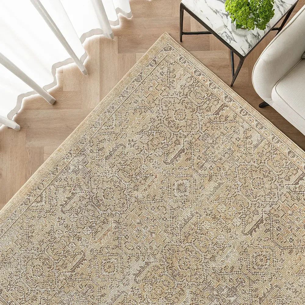 هذه السجادة ذات الطراز العتيق تتمتع بجودة خالدة ستعشقها. بلون دافئ من البني الذهبي والبيج مع حواف مزخرفة عند كل طرف، ستجعل السجادة المزخرفة أي غرفة تبدو أكثر ترحيبًا.
