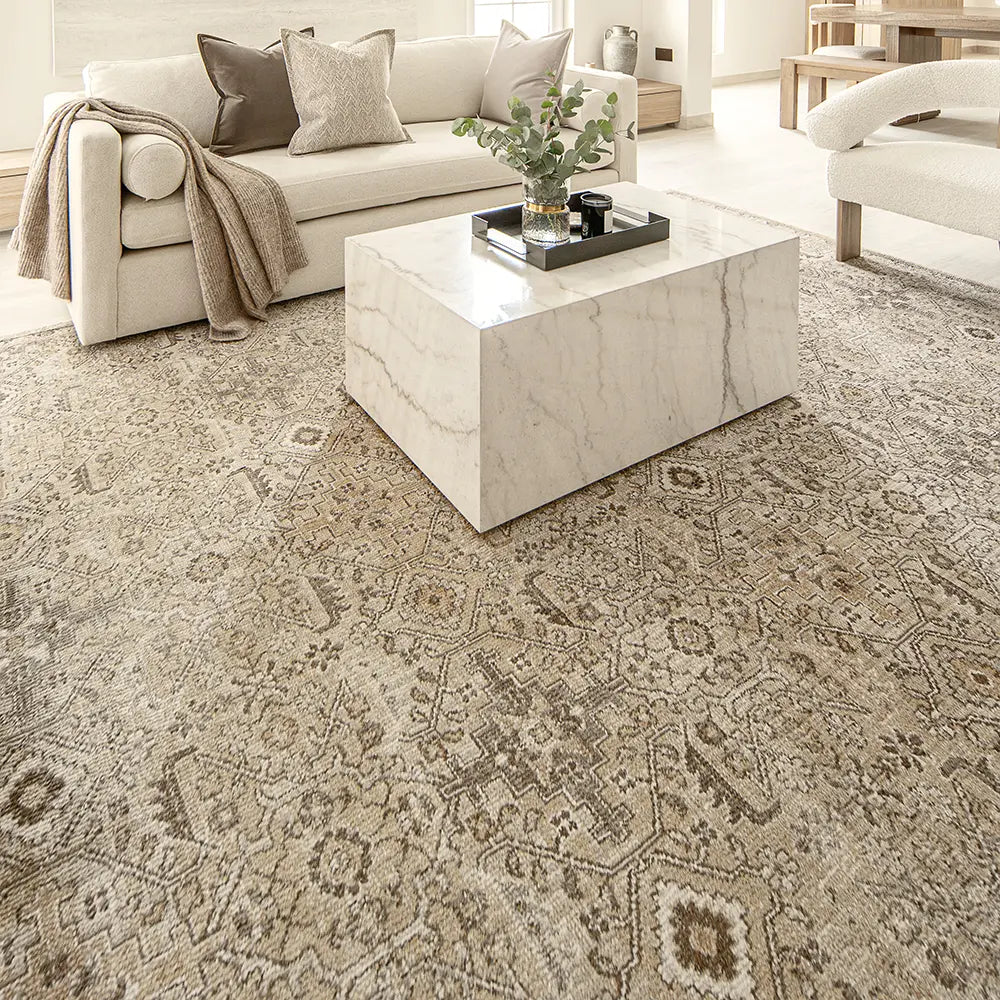 مصنوع من الألياف الصناعية المتينة، هذا السجاد المحايد هو خيار رائع للمناطق ذات الحركة العالية.