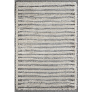 Charcoal Narrow Lines Geometric Ivory Carpet