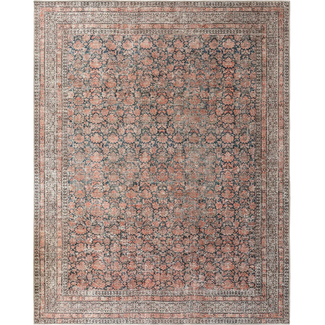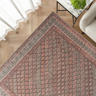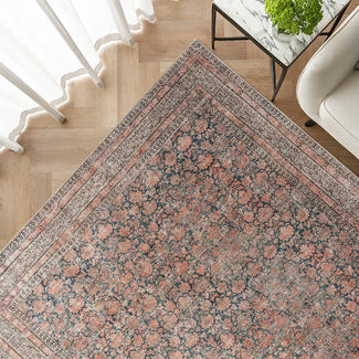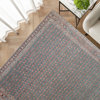 Traditional Pattern Slate Blue and Terracotta Carpet