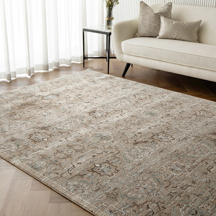 Traditional carpet design meets modern texture in this versatile rug that will go with everything.