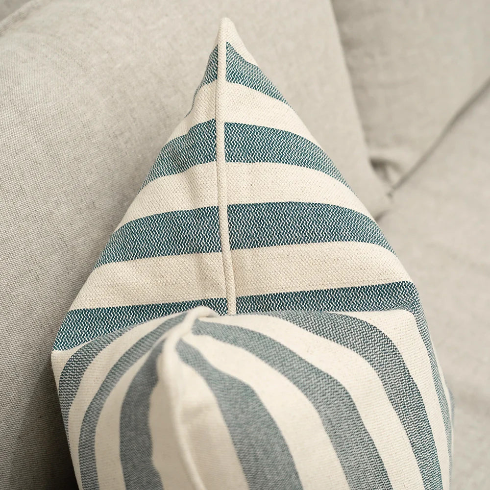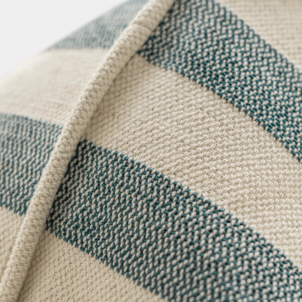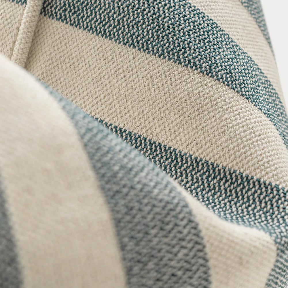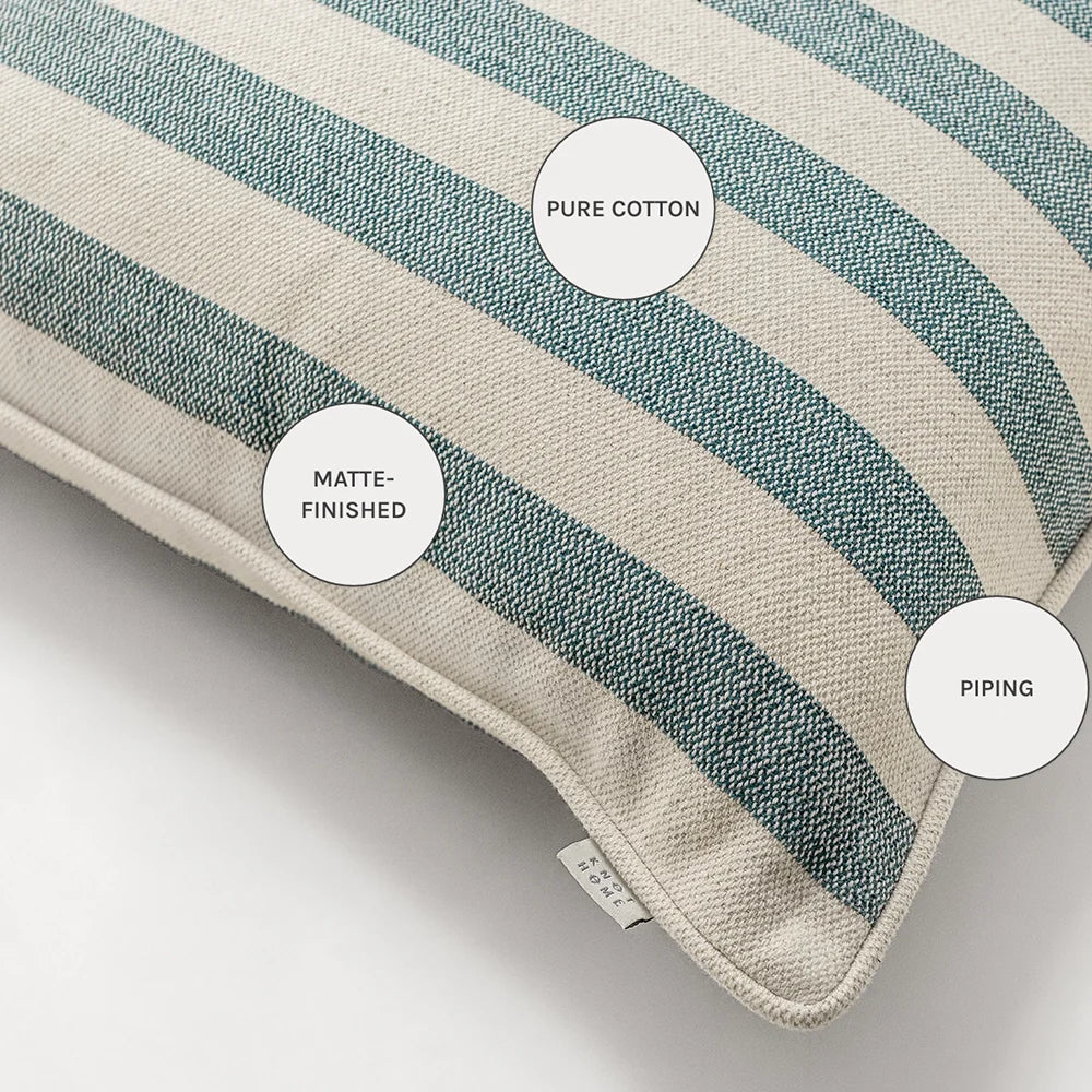This blue and white striped cushion has a breezy seaside aesthetic. In pure cotton, the cushion has wide stripes front and back to transform your living space into a coastal retreat.