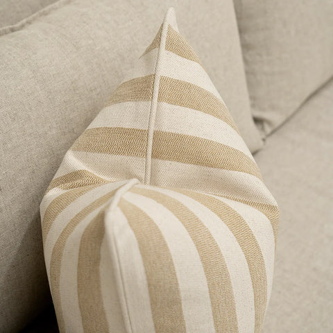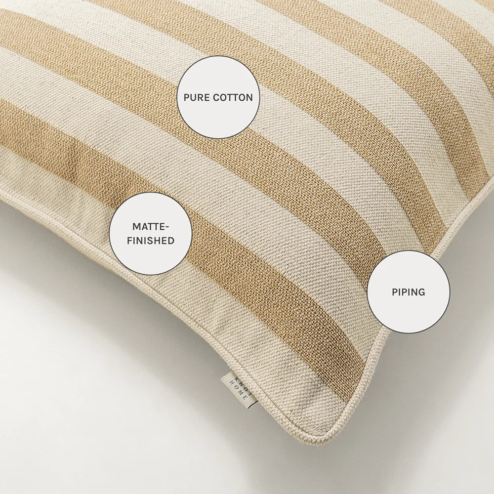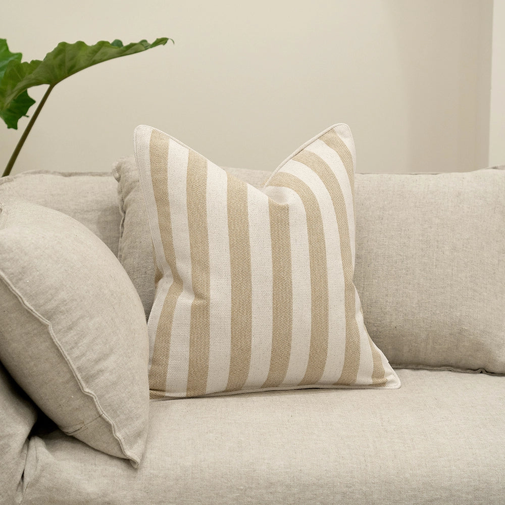 In beige and white, this striped cushion will blend effortlessly with any colour palette. The neutral cushion has stripes all over for an easy seasonal refresh.