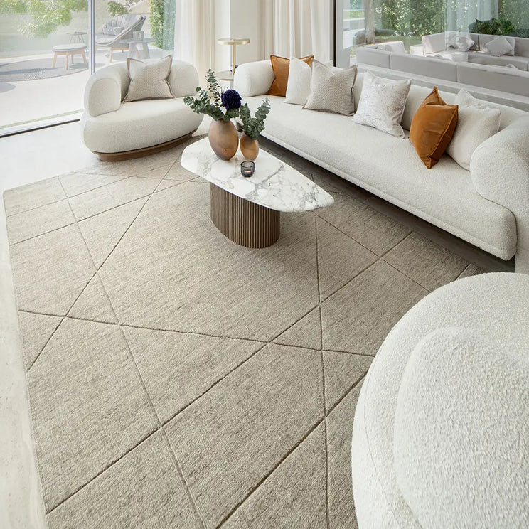 Combining natural fibres and earthy tones with a contemporary geometric design, this neutral carpet is the perfect way to add an organic touch to a modern interior. It's a premium choice for your home.