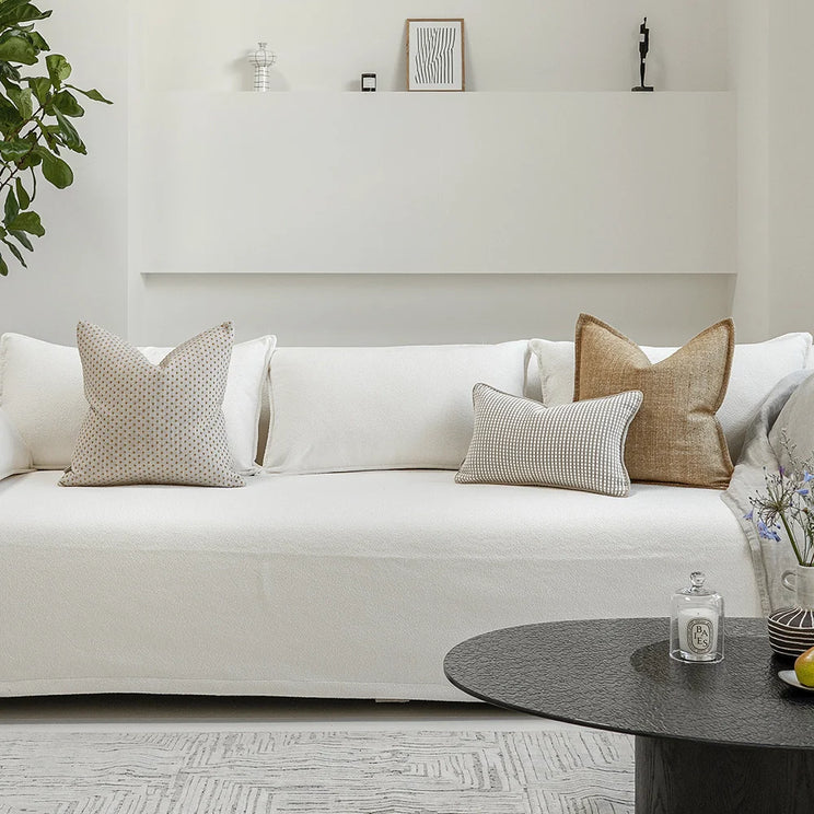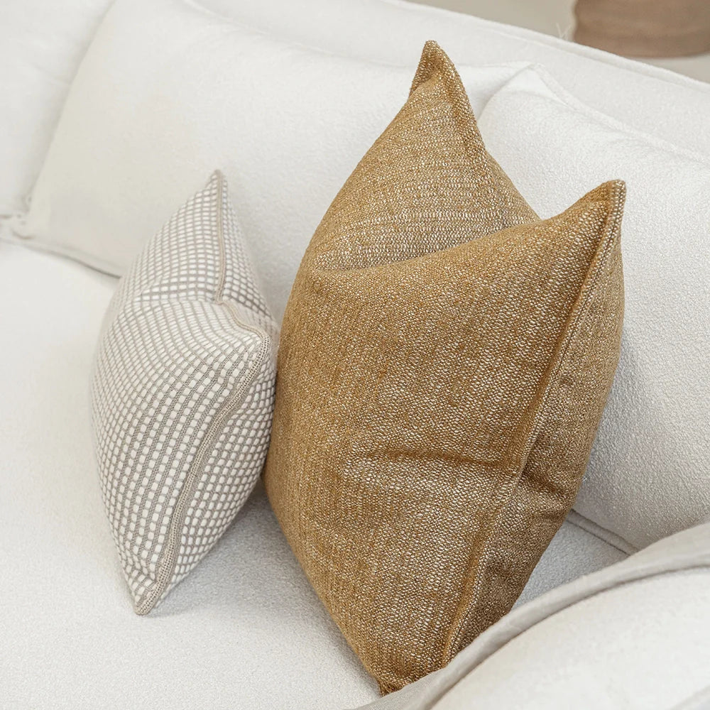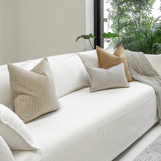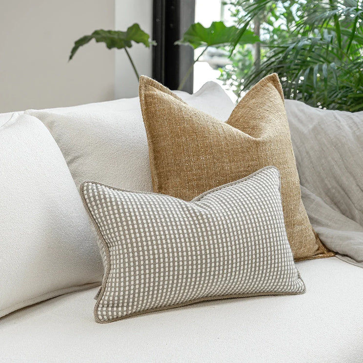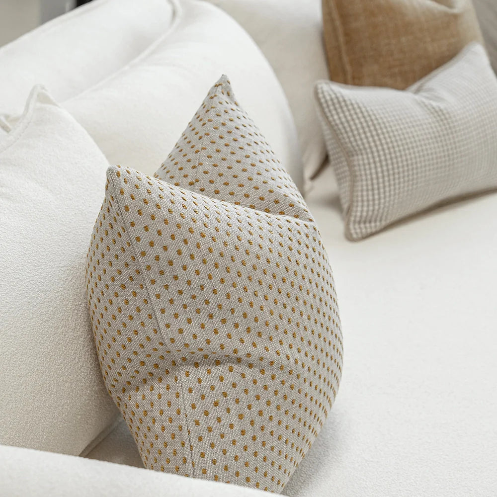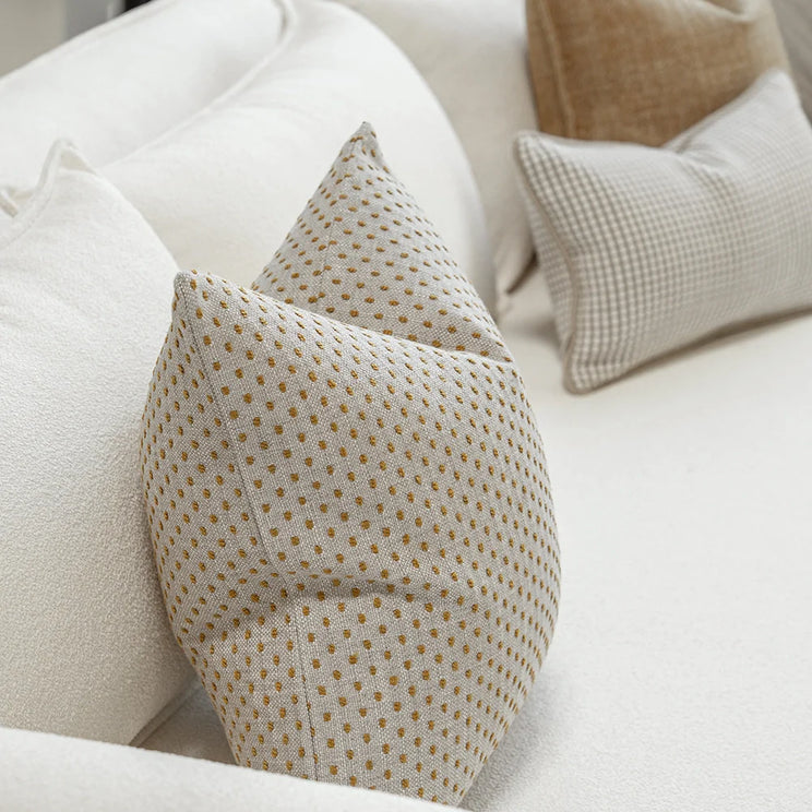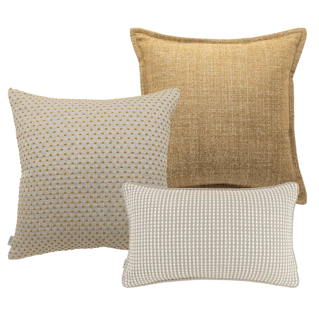 Design: One plain cushion, one jacquard dot cushion and a grid pattern accent cushion