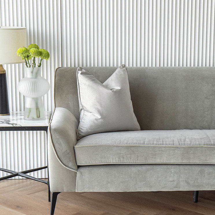 Add a subtle sheen to your home with our Celeste Hodler cushion. Made from cotton, the shiny silver cushion has a subtle textured jacquard pattern that catches the light beautifully.