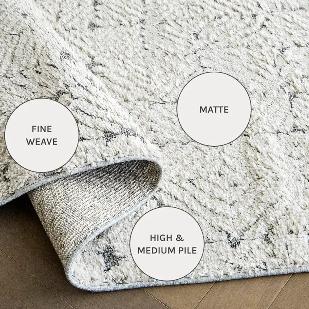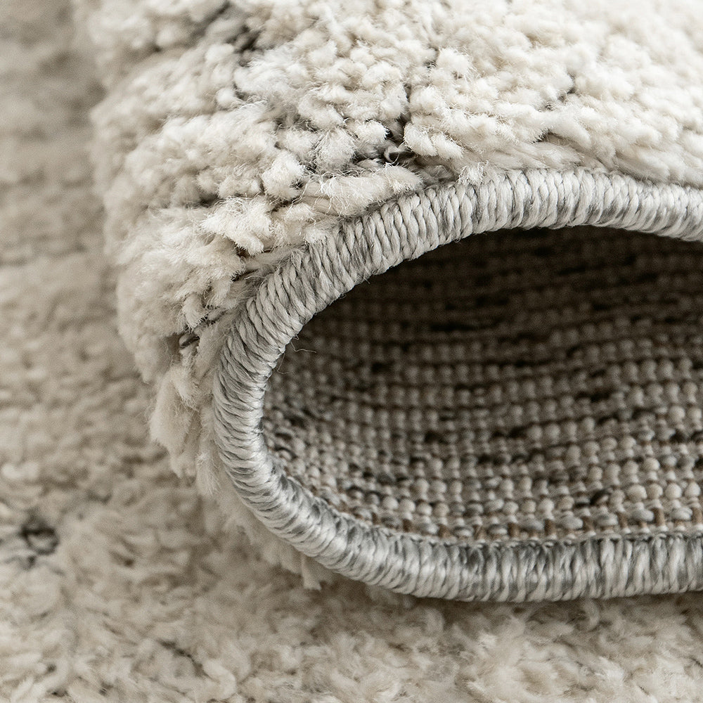 Fuzzy textures paired with a geometric design give this beige rug plenty of cosy charm.