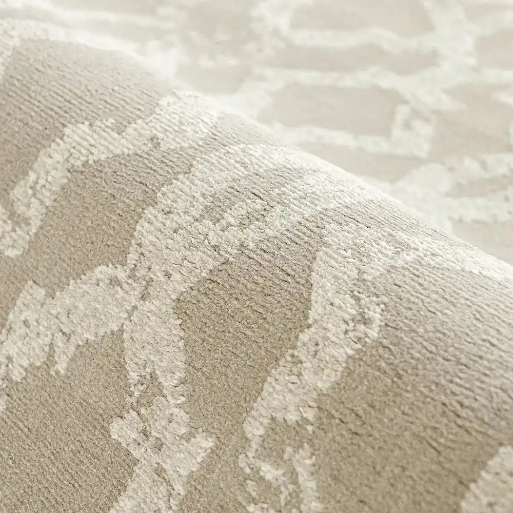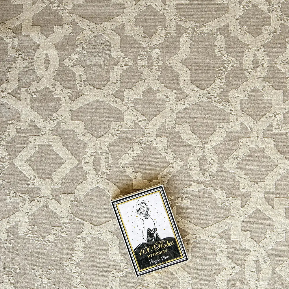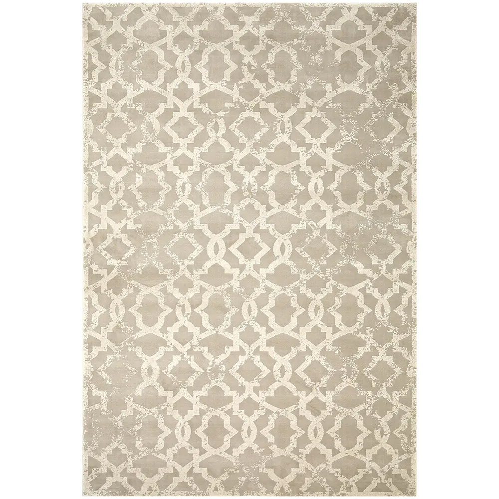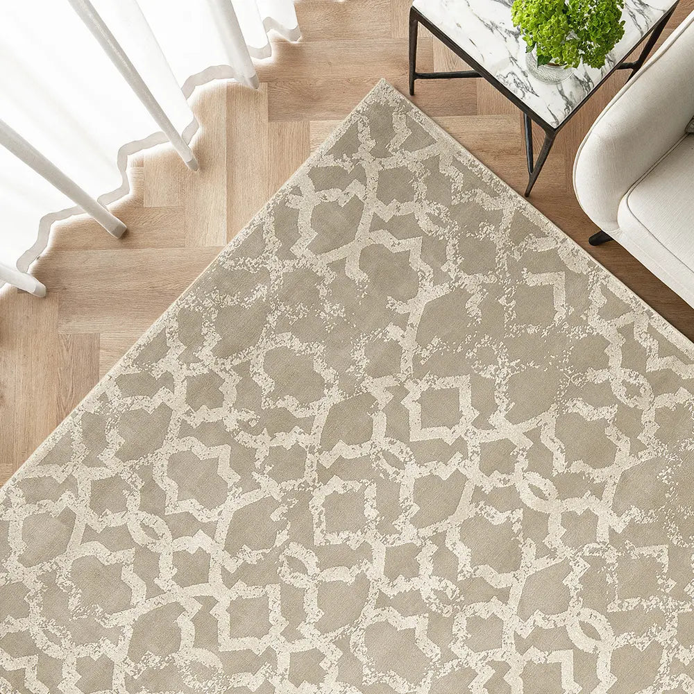 This beige and brown trellis carpet has been artfully distressed for an antique effect.