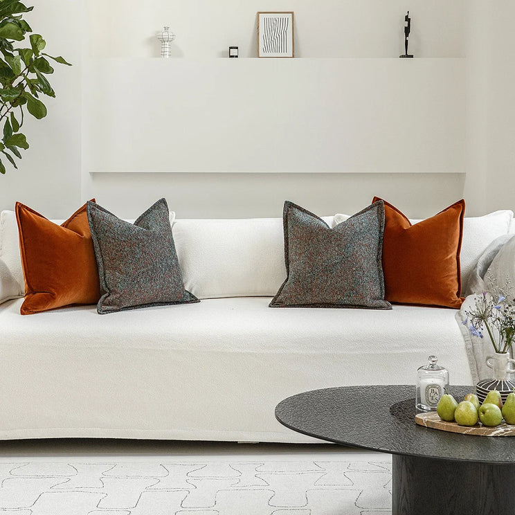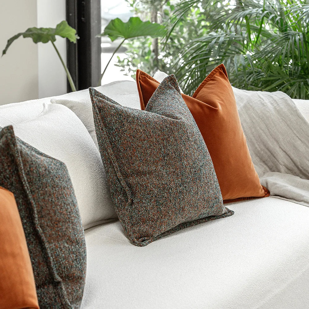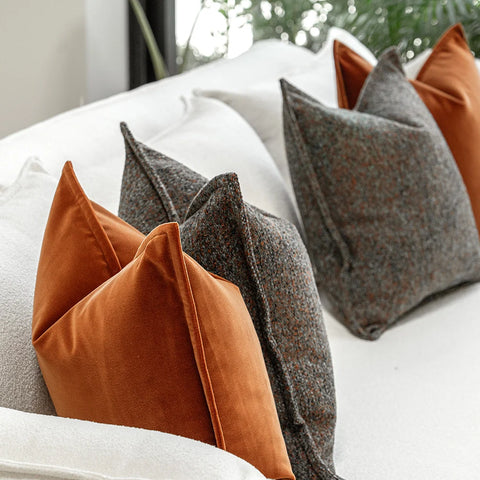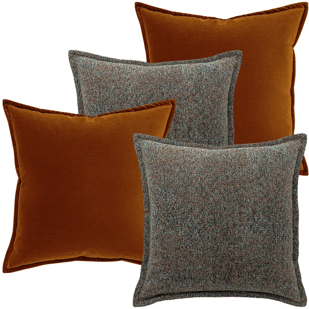 Rich textures define this premium cushion bundle. Two rust velvet cushions are paired with two melange cushions in coordinating shades to add opulence to your living space.