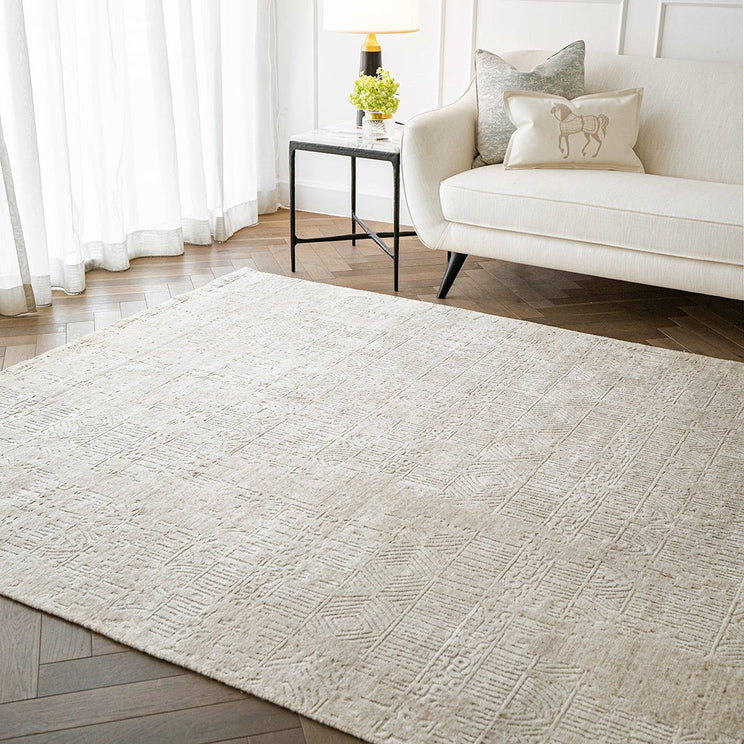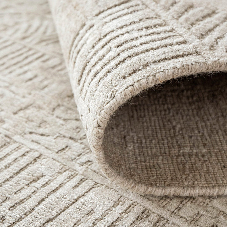 A modern heirloom, this wool-mix rug has an intricately carved pattern.