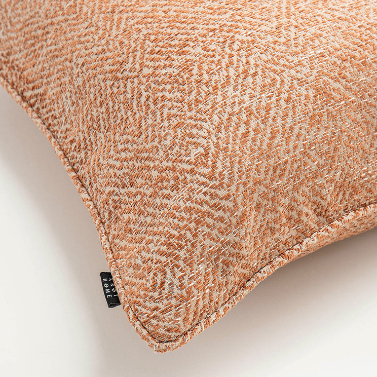 This terracotta cushion comes in a warm, earthy colour palette with an all-over pattern of beige and terracotta zigzags. In a soft, nubbly cotton jacquard, it will add a hint of texture too.