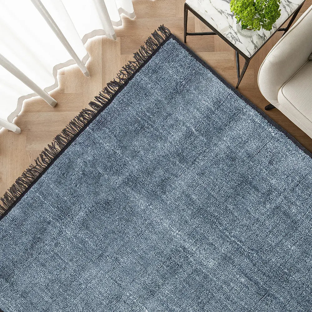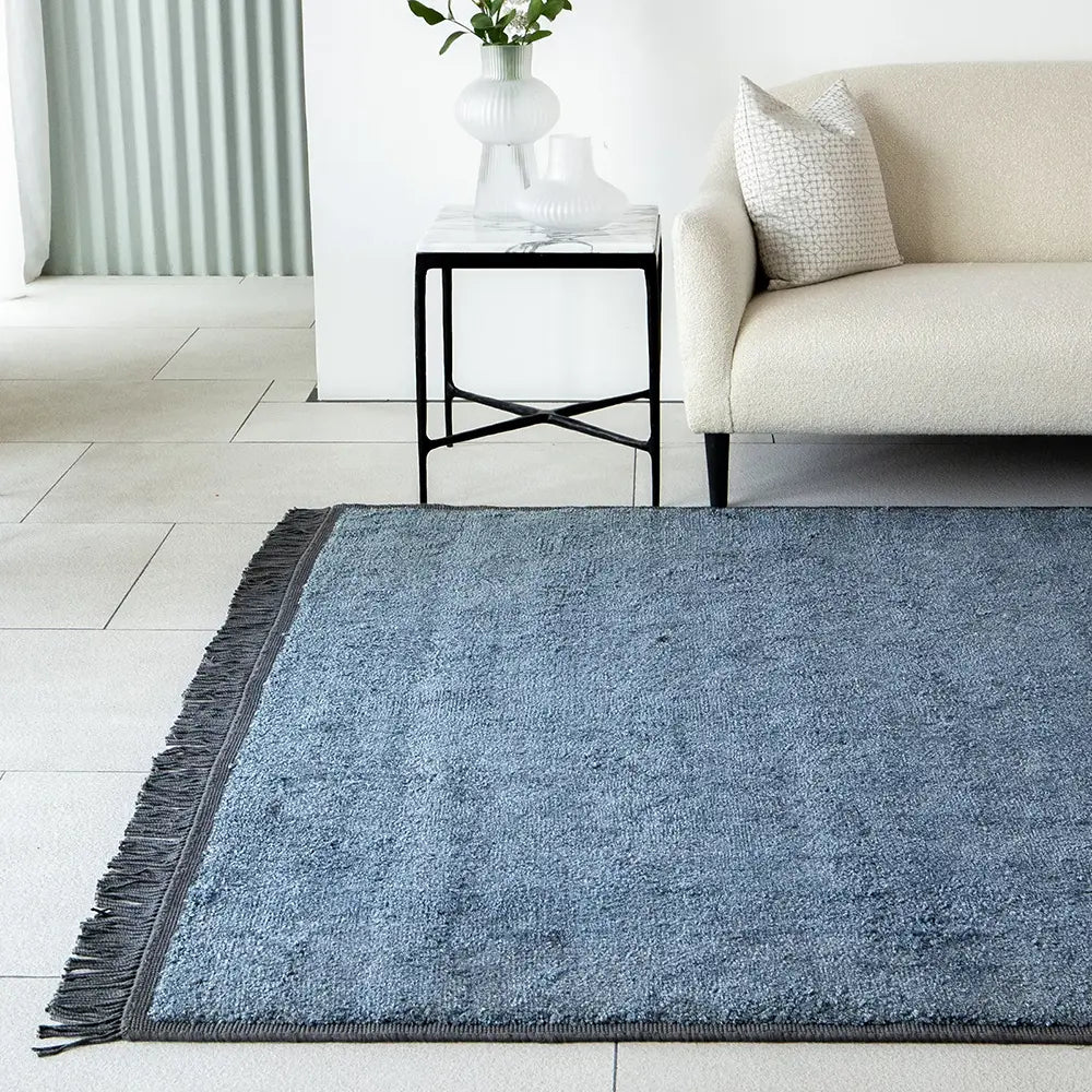 This blue rug is a wonderful way to introduce vivid colour to a modern interior.