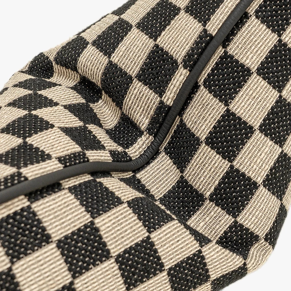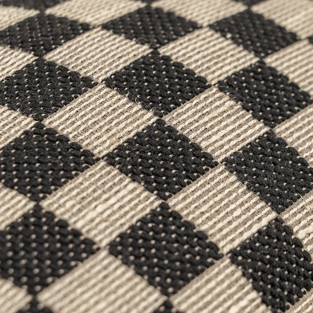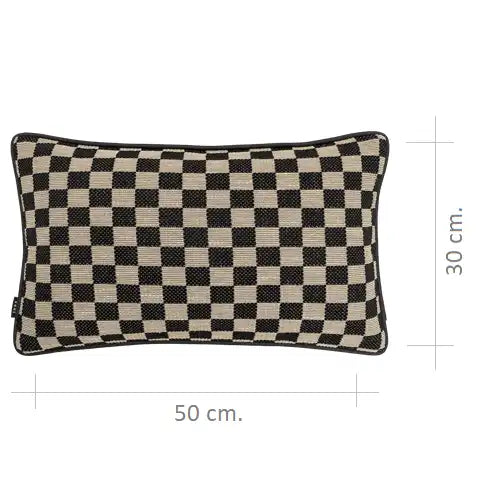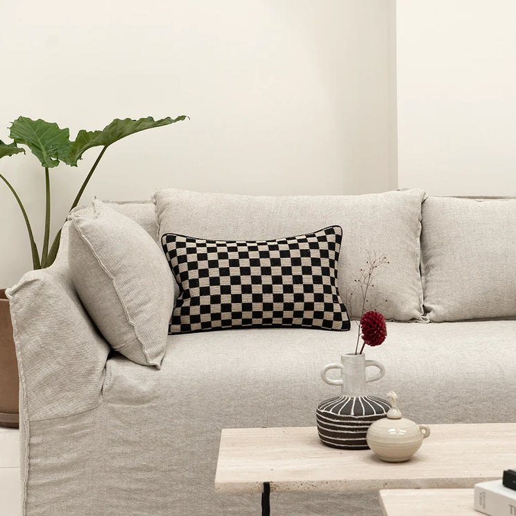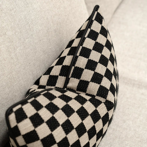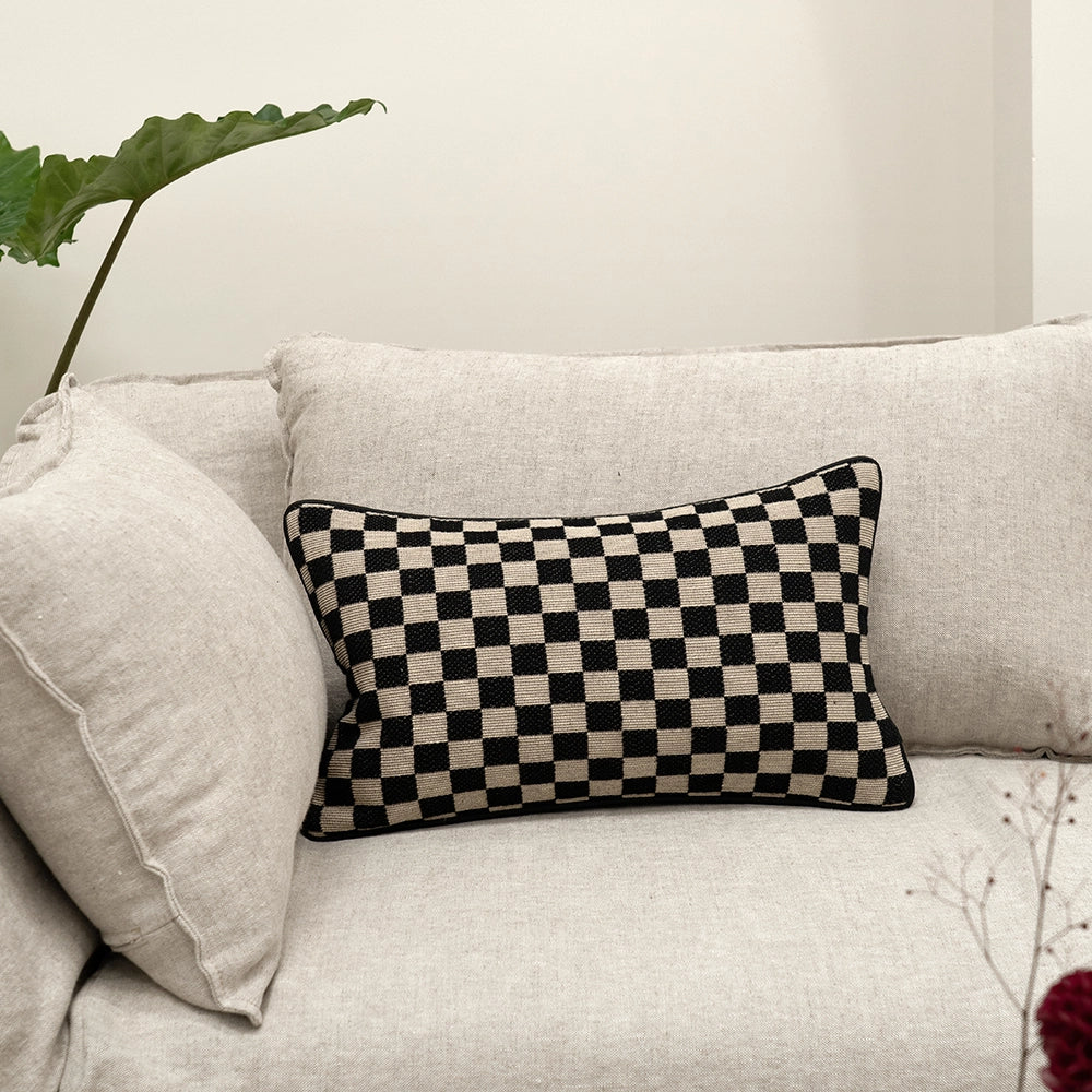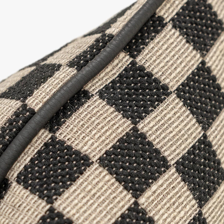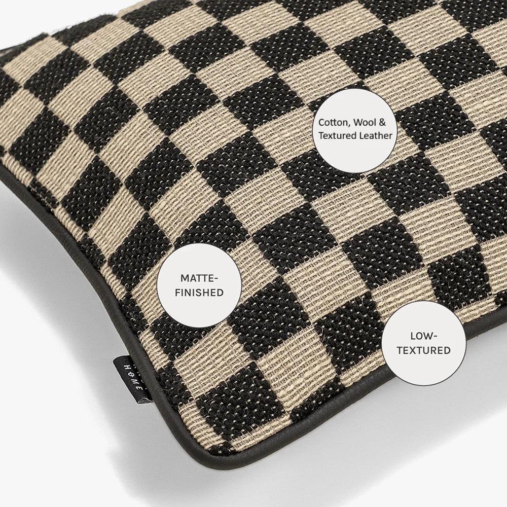 This bold accent cushion will punch up your sofa display. The beige and black cushion is made with a touch of wool for a cosy feel and is finished with contrast PU leather piping for a statement look.